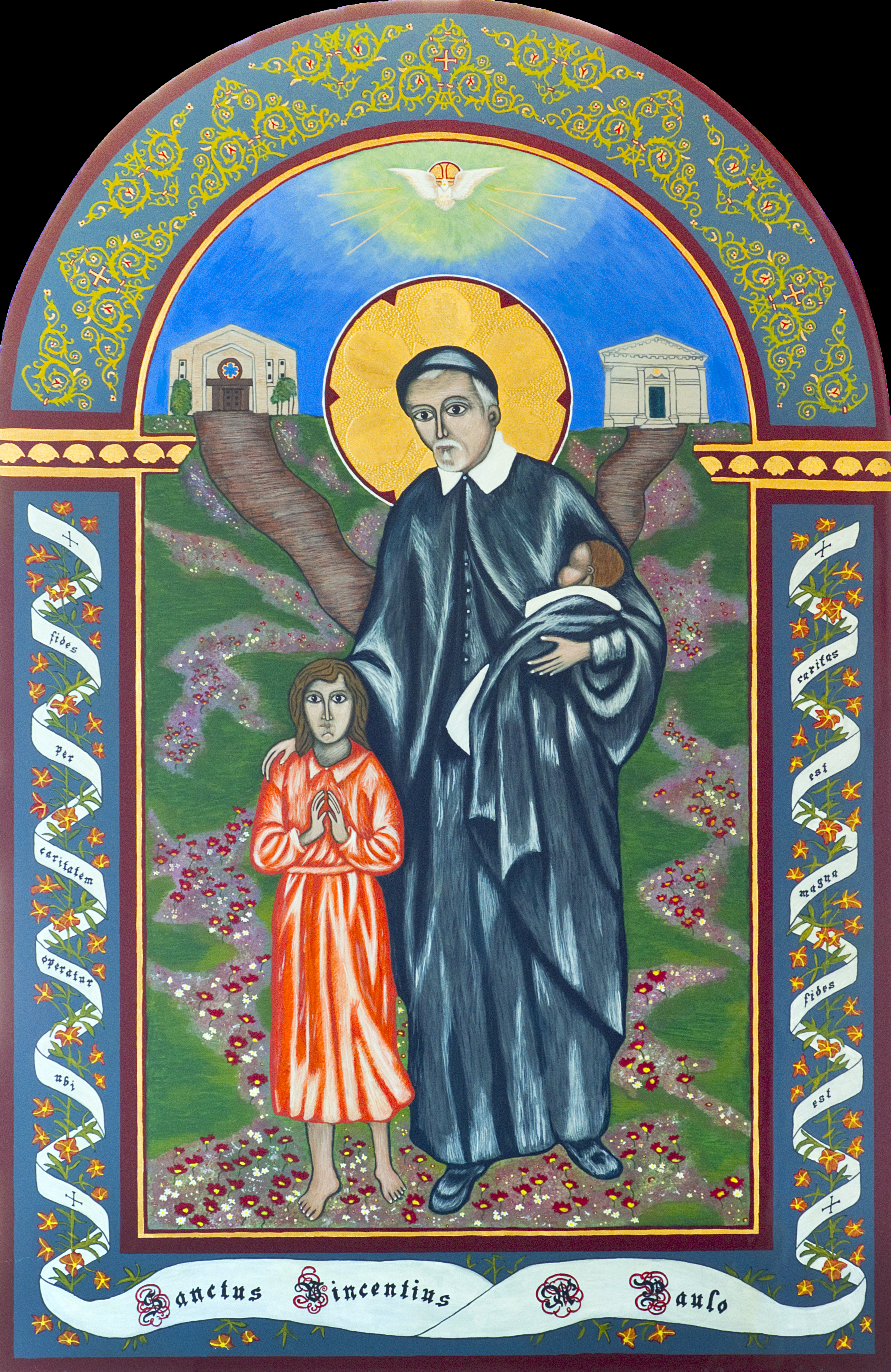 NB: for display purposes only. No reproduction without explicit permission of artist, St. V d P parish, Huntington Beach, CA. Reproduced here with permission. -- Text: Where there is great charity, there is faith. -- Faith acts through charity