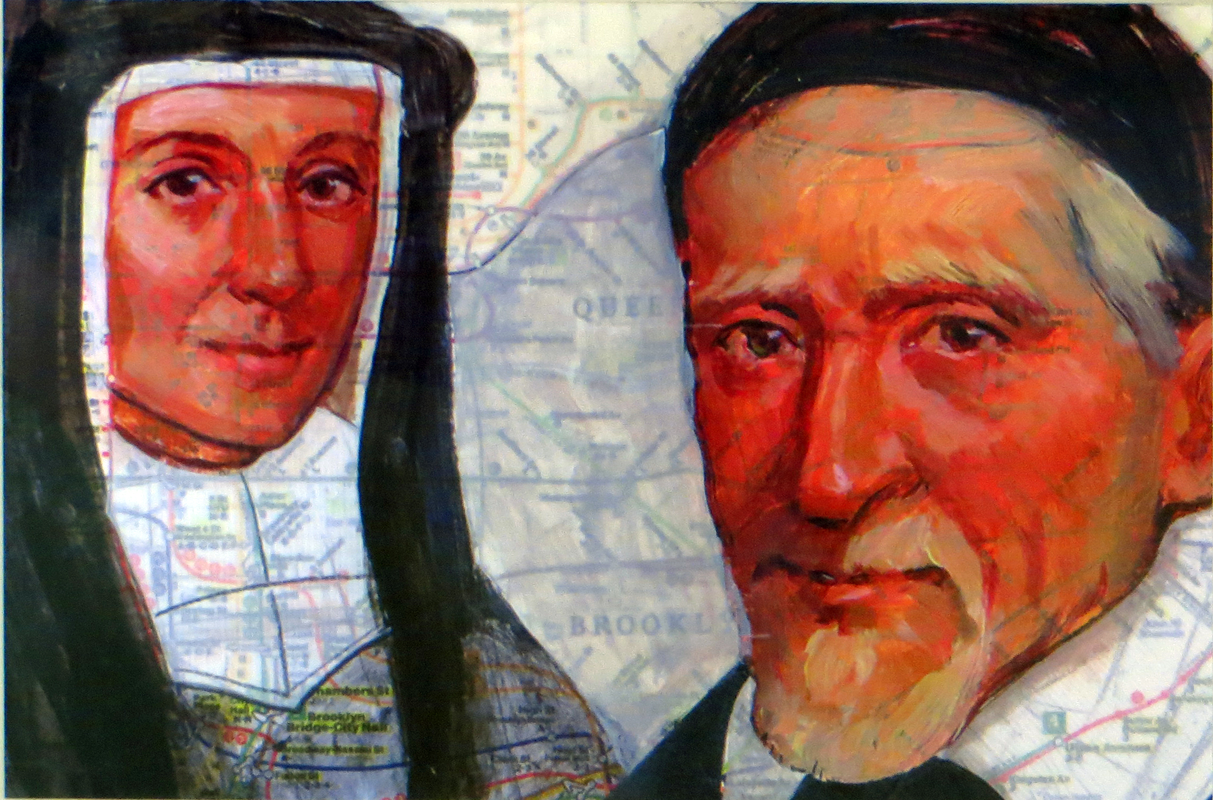 Vincent de Paul, Louis de Marillac, background of New York map