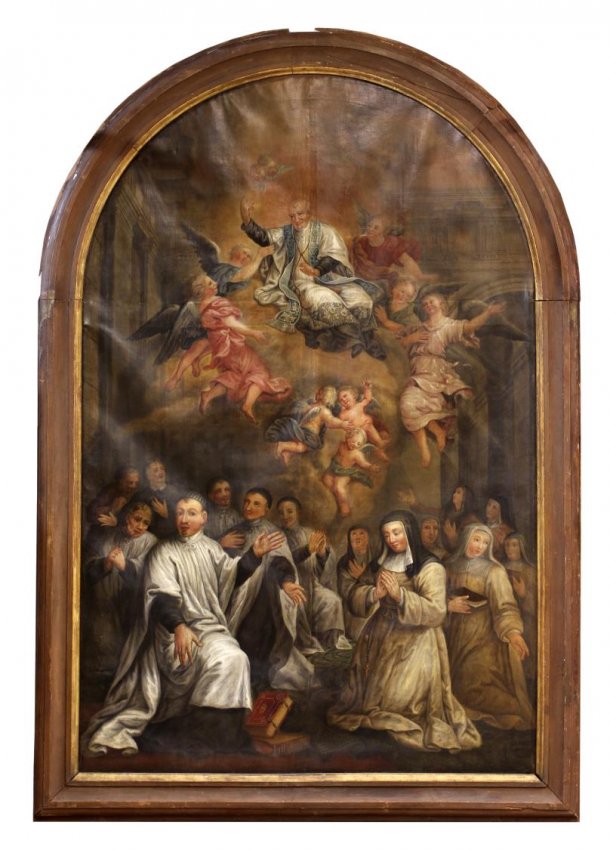 Painted from engraving, probably for altarpiece; original in church of Bourg-la-Reine, France