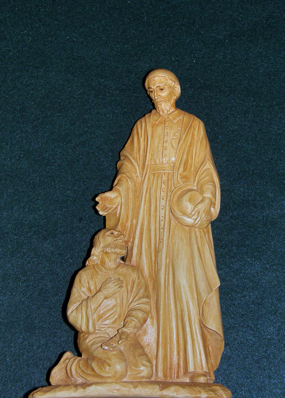 Vincent de Paul, holding hat; poor man kneeling at his feet, with face of Jesus (?); identical at Perryville, MO; in archives, St. Joseph Provincial House, repr. with permission