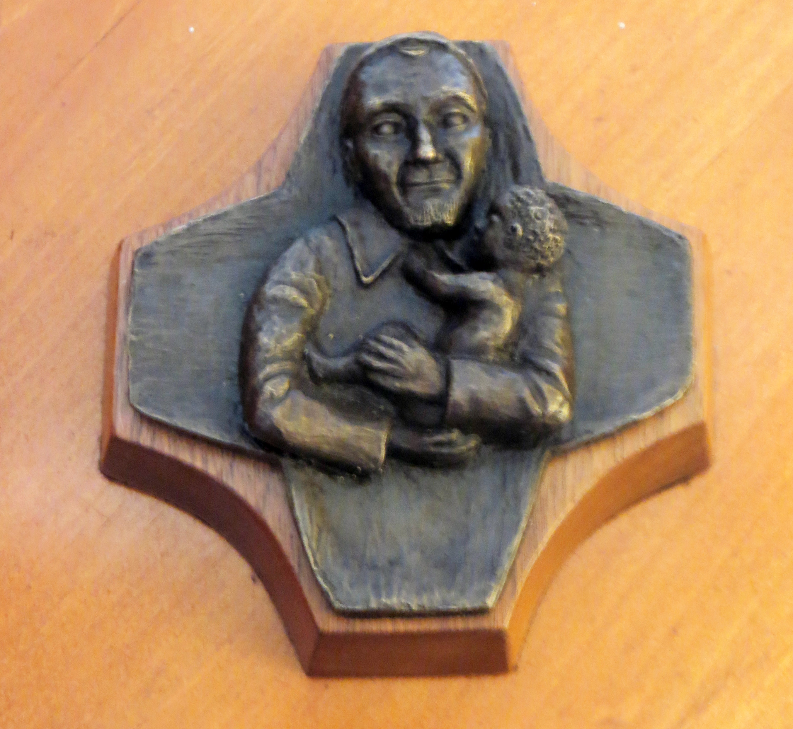 Presentation to George J. Weber, provincial, 1992; artist: Mary Lane, Pampa, TX; casting: Andy Wilks, Hereford, TX; transferred to DePaul University