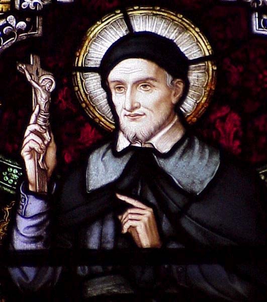 Vincent de Paul points to crucifix, Macon