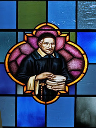 Towel over his right arm; Franciscan-style cord at his waist; internet image