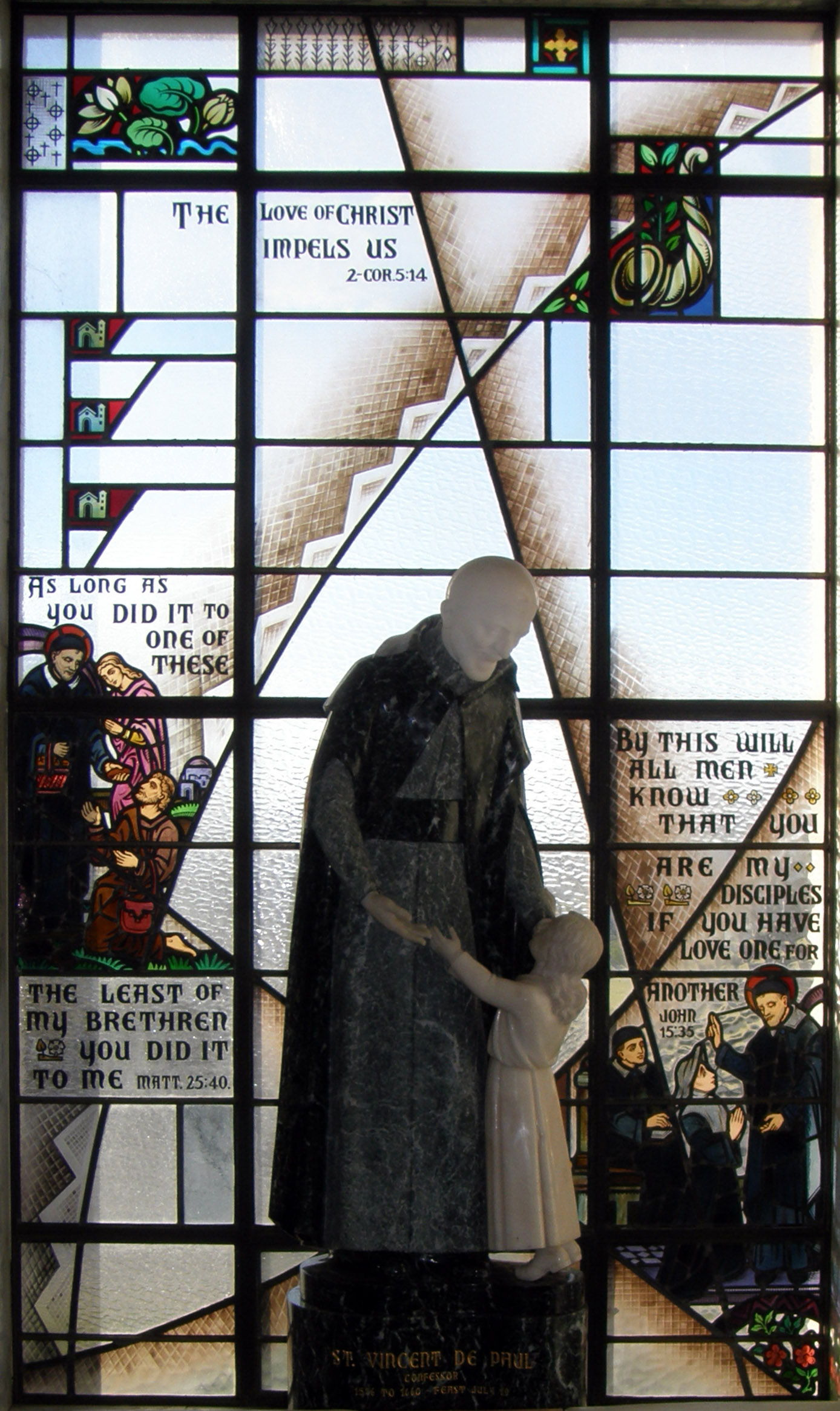 Window and inlaid marble statue