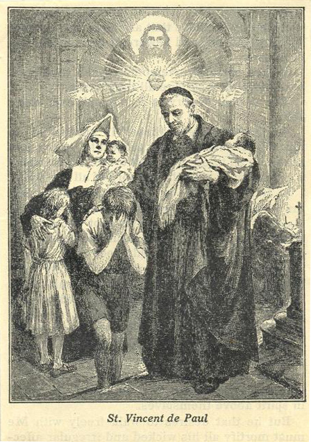 Vincent de Paul with orphans, Daughters of Charity; Sacred Heart of Jesus; probable book illustration; original in Bro. Leo Keigher, CM, collection