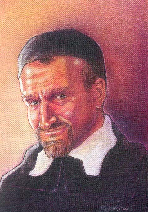 Vincent de Paul, cassock, mantle, skullcap, smiling; location of original unknown