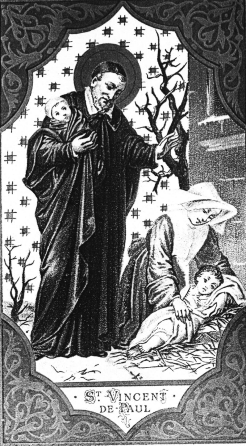 Vincent de Paul with infants, Daughter of Charity