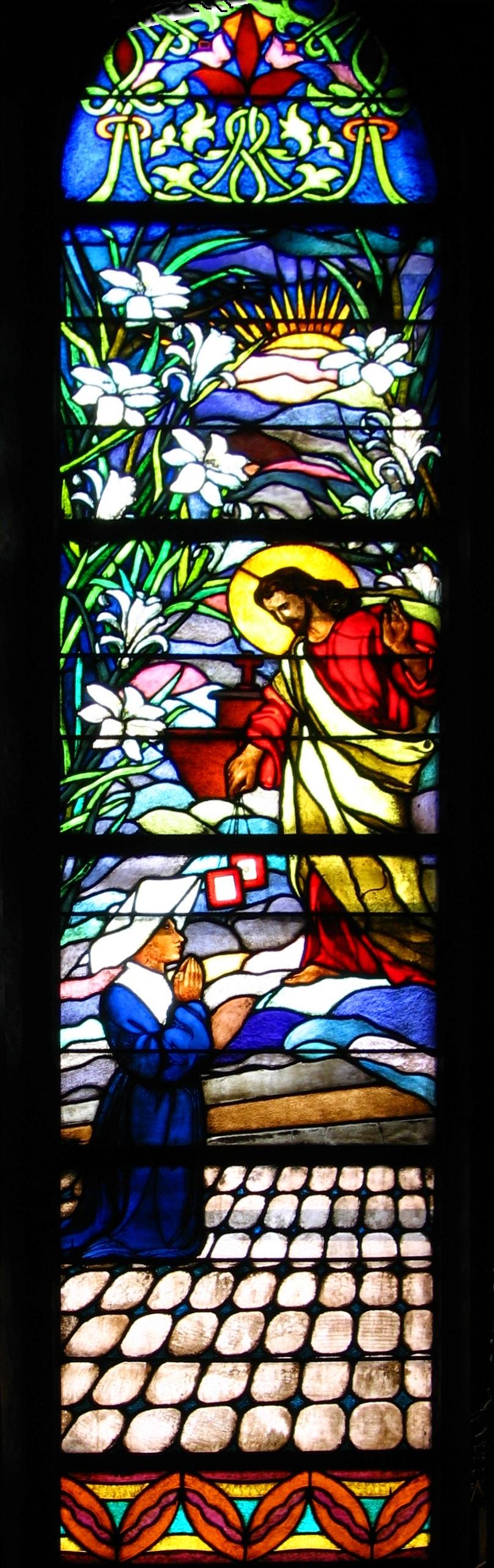 Jesus gives Red Scapular to Sr. Apolline Andriveau; original in Krakow, chapel, ul. Piekarska 8