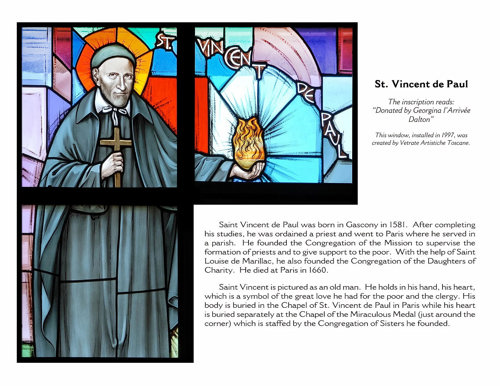000 Introduction AL, Tallasee, Vincent with foundling AZ, Phoenix, St Agnes church CA, Camarillo, Vincent de Paul window CA, Camarillo, Vincent de Paul's works CA, Irvine, St. Joseph Healthcare System CA, Long Beach, St Barnabas church CA, Los Angeles, SV hospital, Hotel Dieu CA, Los Angeles, Vincent de Paul and Daughters CA, Los Angeles, Vincent de Paul and Gondis CA, Los Angeles, Vincent de Paul and orphans CA, Los Angeles, Vincent de Paul and priests CA, Los Angeles, Vincent de Paul as a galley prisoner CA, Los Angeles, Vincent de Paul at Buglose CA, Los Angeles, Vincent de Paul in glory CA, Los Angeles, Vincent de Paul in Tunis CA, Los Angeles, Vincent with Louis XIII CA, Los Angeles, Vincent with the Sick CA, Montebello, commemorative window CA, Montebello, Vincent de Paul and seminarian CA, Montebello, Vincent de Paul with seminarian CA, Mountain View, Villa Siena Chapel CA, Oakland, St. Jarlath CA, Orcutt, St. Louis de Montfort church CA, Patterson, Sacred Heart Church CA, San Francisco, SVdP church CA, Santa Barbara, Vincent and Jesus preaching CA, Santa Barbara, Vincent de Paul and Jesus helping poor CA, Santa Barbara, Vincent de Paul and poor child CA, Santa Barbara, Vincent with children CA, Saticoy, Sacred Heart church, sacristy CA, Torrance, Nativity parish CO, Denver, St. Joseph church CO, Denver, St. Joseph church, detail CT, East Haven, SV , children CT, New Haven, St. Stanislas CT, Norwalk, St Hugh of Cluny DC, Washington, Our Lady, Queen of the Americas DC, Washington, St. Peter DC, Washington, Vincent de Paul with poor boy DE, New Castloe, Holy Spirit parish FL, Boynton Beach, Seminary FL, Holiday, Vincent de Paul, bread FL, New Port Richey, St. Thomas Aquinas parish FL, Venice, SVdP Vincent de Paul window 2008 FL, West Palm Beach, Cardinal Newman High School, Chapel project GA, Dawsonville GA, Macon, Vincent de Paul IA, Dubuque, St Columbkille, detail IA, Dubuque IA, Earling, St. Joseph church IA, Fairfield, VdP, St. Stephen IA, Sioux City, Holy Cross & Blessed Sacarment IL, Chicago, DPU, Arts and Letters Hall, small IL, Chicago, DPU, Arts and Letters Hall, very large IL, Chicago, DPU, Arts and Letters hall IL, Chicago, DPU, DePaul Center, 5th floor, small IL, Chicago, DPU, DePaul Center, 5th floor, very large IL, Chicago, DPU, Loop chapel, small IL, Chicago, DPU, Loop chapel, very large IL, Chicago, DPU, Richardson Library, dedication IL, Chicago, DPU, Richardson Library, natural light, detail IL, Chicago, DPU, Richardson Library, natural light IL, Chicago, DPU, Richardson Library, small IL, Chicago, DPU, Richardson Library, very large IL, Chicago, DPU, two children, small IL, Chicago, DPU, two children, very large IL, Chicago, Holy Family parish IL, Chicago, Loyola University, Vincent de Paul, social work IL, Chicago, Queen of All Saints Basilica, Vincent de Paul IL, Chicago, St. Andrew parish IL, Chicago, St. Ferdinand, Vincent de Paul IL, Chicago, St. Hedwig church IL, Chicago, St. Joseph Hospital, Vincent de Paul, charity IL, Chicago, St. Vincent parish, Vincent de Paul, bust IL, Chicago, St. Vincent's, Vincent taken to glory, complete IL, Chicago, St. Vincent's, Vincent taken to glory, detail IL, Chicago, Vincent de Paul head IL, Chicago, Vincent de Paul, green IL, Chicago, Vincent de Paul, Louise de Marillac IL, Chicago, Vincent de Paul, orange IL, Hillside, Detail of Louise de Marillac window IL, Hillside, Queen of Heaven Mausoleum 1 IL, Hillside, Queen of Heaven Mausoleum 2, detail IL, Hillside, Queen of Heaven Mausoleum 3, detail IL, La Salle, Spirit of St. Vincent de Paul IL, Peoria, SVdP Ch IL, Springfield, St. Francis Convent, complete IL, Springfield, St. Francis Convent, detail IN, Evansville, Mater Dei, Vincent de Paul 1 IN, Evansville, Mater Dei, Vincent de Paul 2 IN, Huntington, Victory Noll Chapel IN, Huntington, Victory Noll SVdeP 2 IN, Huntington, Victory Noll SVdP 1 IN, Indianapolis, St. Vincent Hospital IN, South Bend, Notre Dame IN, St. Meinrad Archabbey 1 IN, St. Meinrad Archabbey 2 IN, Tipton KS, Aurora, St. Peter's Church KY, Nazareth, VdP among saints LA, New Orleans 1 LA, New Orleans 2 LA, New Orleans 3 LA, New Orleans 4 LA, New Orleans 5 LA, New Orleans 6 LA, New Orleans, Perboyre LA, New Orleans, cathedral LA, New Orleans, St. Joseph Church LA, New Orleans, St. Mary Assumption Church LA, New Orleans, SVdP church, detail LA, New Orleans, SVdP church, signature LA, New Orleans, SVdP parish, 1 LA, New Orleans, SVdP parish, 2 MA, Attleboro, St John Evangelist MA, Boston area, drawing for windows SVdP, John of the Cross, MA, Boston, Carney Hospital MA, Boston, Holy Cross Cathedral, 1876 complete MA, Boston, Holy Cross Cathedral, 1876, detail MA, Boston, Vincent de Paul, cathedral MA, Brockton, Vincent de Paul MA, Cambridge, SSJE, Br. Jonathan Maury, SSJE (Society of St. John the Evangelist), MA, South Boston, SVdP, by Lyn Hovey studio MA, Wellfleet, O L of Lourdes MA, Wellfleet, Our Lady of Lourdes MD, Baltimore, Seminary chapel MD, Baltimore, SVdP church, window, removed MD, Baltimore, SVdP church MD, Cheverley, St. Ambrose MD, Ellicott City, Franciscan Soy Candles MI, Detroit, Blessed Sacrament Church MI, Detroit, Cathedral Abbey of St. Anthony, Michigan Stained Glass Census Gift of CMBA Branch 78 MI, Detroit, Charity of Vincent de Paul MI, Detroit, Sacred Heart Seminary MI, Detroit, St. Anne, St Joseph of Calasanz,, Vincent_de_Paul, John of God MI, Detroit, Sweetest Heart of Mary MI, Houghton St. Ignatius Loyola Church MI, Jackson, SVdP with an infant MI, Shepherd, SVdP church, 1915 MN, Little Canada, St John’s Church MN, Minneapolis, Incarnation Church MN, Winona, Sacred Heart Cathedral MO, Cape Girardeau, Old St. Vincent church MO, Cape Girardeau, St. Vincent's parish school MO, Cape Girardeau, Vincent de Paul MO, Cottleville, St. Joseph MO, Creve Coeur, St Richard Church MO, Creve Coeur, St Richard MO, Eureka, Vincent de Paul 2 MO, Perryville, Vincent de Paul, 1 MO, Perryville, Vincent de Paul, 2 MO, Perryville, Vincent de Paul, 3 MO,