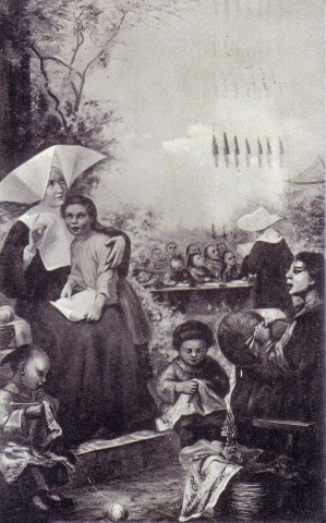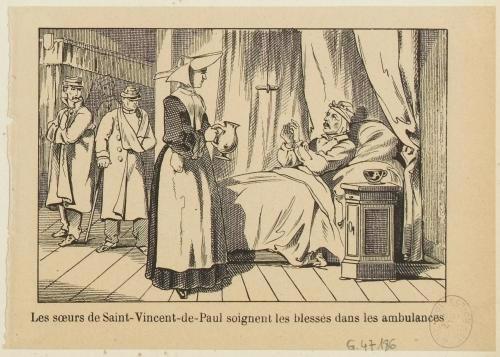 Daughters of Charity, drawings, 201-300 Daughters of Charity, drawings, 301-400 Daughters of Charity, drawings, 401-500 001 China, baptism 002 food for poor 003 France, Battlefield nursing 004 France, funeral of a Sister, Boilly 005 France, habits 006 France, murder of Sr. Boinet, 1898. Libourne 007 France, Pharmacy 008 France, postulant and family 009 France, Serving Chinese children DPU 010 France, Sister at prayer 011 France, Sister with toque and coif, Heliot 012 France, Sister with toque, pot, 17th century 013 France, Sister with toque, pot 014 France, Sister, toque, pot 015 France, Sisters and poor, Images d'Epinal 016 France, Sisters and works 017 France, Sisters on battlefield 018 France, Sr G Cabaret, toque, no coif 019 Madagascar 1 020 Madagascar 2 021 Netherlands, Droste 1 022 Netherlands, Droste 2 023 Netherlands, Droste 3 024 Netherlands, Droste 4 025 Netherlands, Droste, 5, photo 026 Poland, History of Sisters 027 Poland, Sisters and Sacred Heart of Jesus 028 Poland, Sisters in the missions 029 Poland, Virgin Mary protectress 030 Poland 031 Sister and beggars 032 Sister and poor man, new habit 033 Sister and poor man 034 Sister cleaning 035 Sister in country 036 Sister standing 037 Sister teaching 038 Sister visiting sick 039 Sister with abandoned infants 040 Sister with children 041 Sisters distributing food 042 Sisters helping poor man 043 Sisters in cloister walk 044 Sisters in Middle East 045 Sisters in service 046 Sisters, children, birds 047 Spain, 200 years 048 Spain, Holy Infancy, Chinese orphans 049 SV, St. Louise forming Sisters 050 two Sisters in country 051 USA, Chicago, Rafael Contreras 052 USA, Concert 053 USA, He has anointed me 054 USA, Wyeth 1 055 USA, Wyeth 2 056 USA, Wyeth 3 057 Vietnam 1 058 Vietnam 2 059, France, publicity 060, France, publicity, reverse 061, France, publicity 062, France, publicity 063, France, publicity, reverse 064, France, publicity 065, France, publicity 066, France, publicity, reverse 067, France, publicity 068, Daughter of Charity in Japan 069, choir practice with orphans 070, France, 1919 071 Brazil 072, Brazil 073, France, Sisters as naval nurses 074, France, Sister at bedside of a sick man 075, France, Sister in First World War 076, France, publicity, First World War 077 USA 078 Brazil, joy of serving 079, Brazil, setting out on mission 080, Brazil, inventiveness for the poor 081, Brazil, Sisters given to God for the sake of the poor 082, Brazil, Love without measure is hardly love 083, Brazil, charity, a song of service 084, Brazil, flowers from Sts. Louise and Vincent 085, France, Taquoy, Hyppolyte, Sisters entering carriage, rue du Bac 086, USA, IN, Evansville, Seton Residence 087, Brazil, Marcia Torquato, birthday greetings 088, Brazil, Marcia Torquato, service of the poor 089, Brazil, Vocational poster 090, Brazil, vow renewal 2018 091, France, cartoon with Sisters, girls 092, Brazil, keychain element 093, Brazil, Simplicity 094, England, Visit to a creche 1893 095, Nicaragua, 1960 096, France, publicity, tea 097, Brazil, Marcia Torquato drawing 098, Brazil, Marcia Torquato drawing 099, Brazil, Marcia Torquato 100, Brazil, Marcia Torquato 101, Brazil, Marcia Torquato 102, Brazil, Marcia Torquato 103, China, Tianjin, generic massacre illustration 104, USA, CA, Lynwood, St. Francis Medical Center 105, Gautier, Armand, seated Sister 106, Gautier, Armand 107, Gautier. Armand 108, Raffle for hungry children 109, voting, 1912 110, Saints 111. Daughter of Charity cares for a foundling, Work of Alberto Maso Gilli, ca 1871 112. Military hospital, Bohemia 113. DC aiding soldiers at Inkermann battle 114. France, Sisters, advertisement 115, Sister in a garden 116. Franco-Prussian War, Sisters treating wounded at Rezonville 117. Sisters serving in a war, 1870 118. New hospital in Pera, Istanbul, Turkey 119. Franco-Prussian War, hospital iInside Paris 120. Franco-Prussian War, Sedan church 121, Death of André Mazet, physician, 1821 122. Hadol, Paul, book illustration 123. LdM and Sisters, before ND de Paris 124. Sister dresses a soldier's leg Artist, Estelle De Feu, 1832 125. Daumier drawing 126. Donjean, Gustave drawing 127. Sisters distributing food 128. Drawing, Sr. Rosalie Rendu 129. The Grey Sister (DC) 130. Two Sisters and a soldier 131. Soldiers looting the possesssions of the Sisters, incorrectly called Little Sisters of the Poor. 1870 132. Distribution of food to the poor, winter, by DC from Val de Grace, Paris 133, Daughter of Charity, standing 134, Sisters attending a wounded soldier 135, modern Daughter 136. Helping the poor 137, On mission, white habit for tropics 138, France, the Turn at the foundling home 139, Two Sisters 140, Poland 141, France, Gautier, Armand 142, France, Gautier, Armand 143, Expulsion of the Sisters 144, Crimean War battle scene 145, Laundry for the poor 146, Sister musicians 147. German text, a Doctor for the Poor 148, Nursing the soldiers 149, Nursing the soldiers 150, Color version of 149 151, Nursing the dying soldier 152. Nursing a patient 153, Nusing a patient 154. Drawing by F. Cichocki, Poland 155. Sr. Joseph, floods of 1875 156. Soeur Borel 157. Soeur Borel 158, Soeur Borel 159. Soeur Borel 160. Soeur Borel 161. Soeur Borel 162. Soeur Borel 163. Soeur Borel, railroad schedules 164. Liebig publicity 165. Liebig publicity 166. Liebig publicity 167, Michel Giry, artist's proof, 1940 168. Spanish American War 169. Sisters caring for a wounded patient 170. Sisters with French military officers 171. Publicity engraving. Elixir 172. Sisters with orphans, nursing women 173. Dry goods publicity 174, DC in a field hospital 175, Cookies for the footsoldiers 176. Mission support. Baptism in China 177. Tien-tsin massacre 178, Sister helping two wounded soldiers 179, Netherlands, Droste 180, Spain, Elixir of SVdP 181, France, Publicity, cure for anemia in older women 182, France, Publicity, with bottles 183, France, DC before St. Sulpice, Paris 184, book cover 185, Sisters landing in San Francisco 186, F
