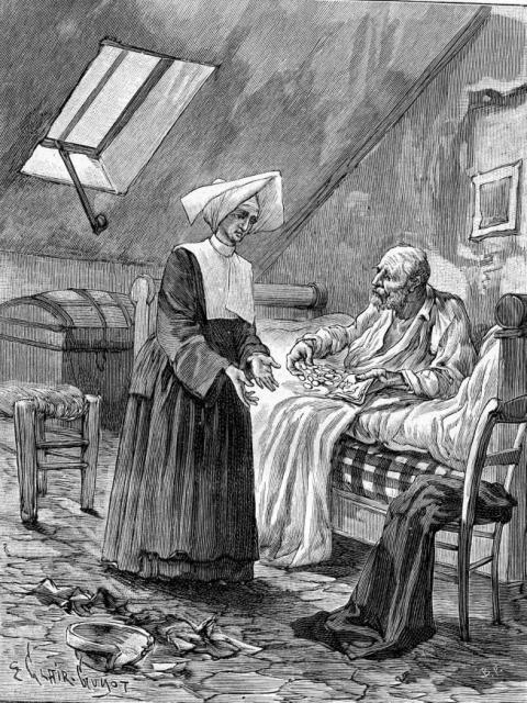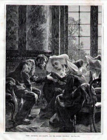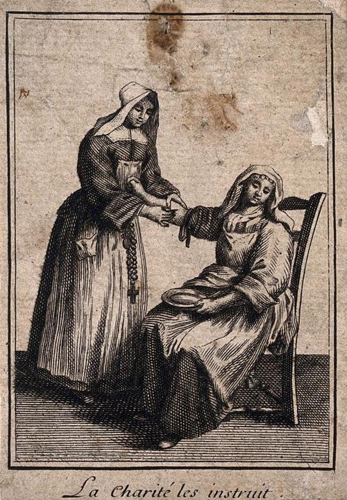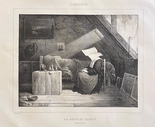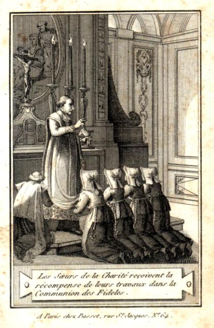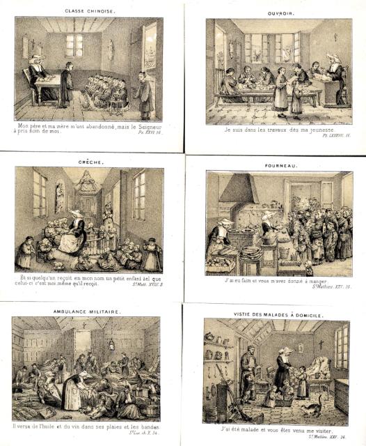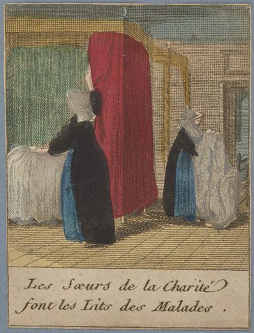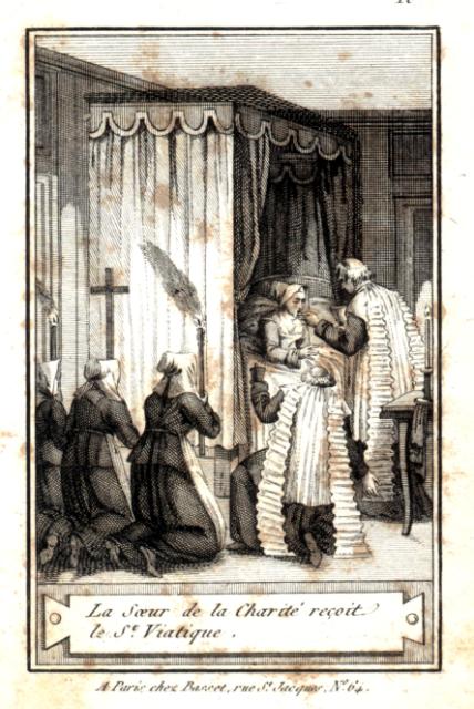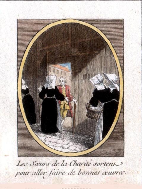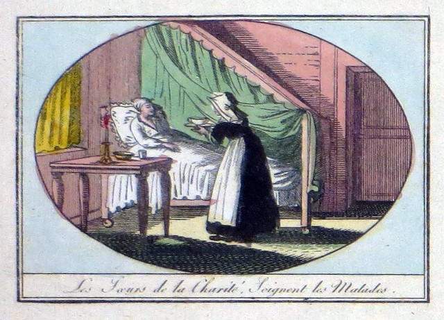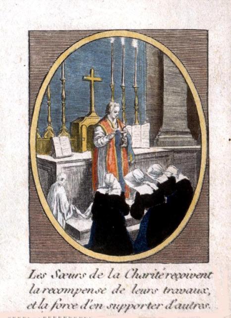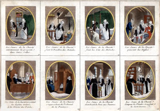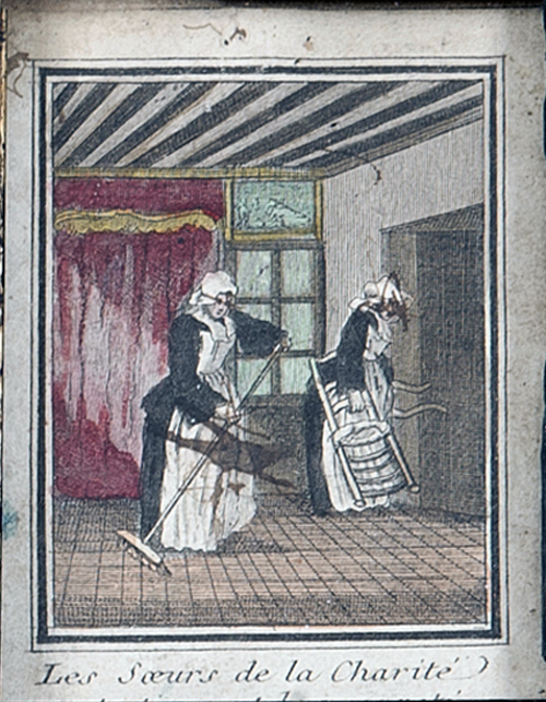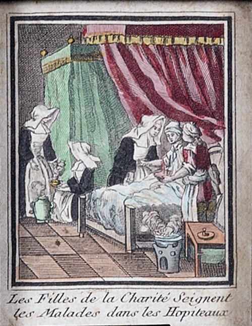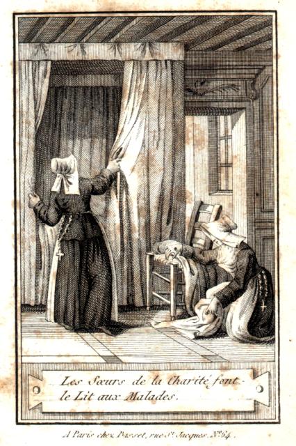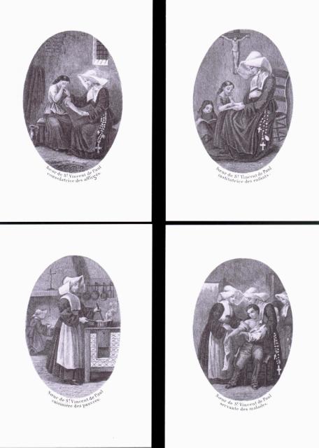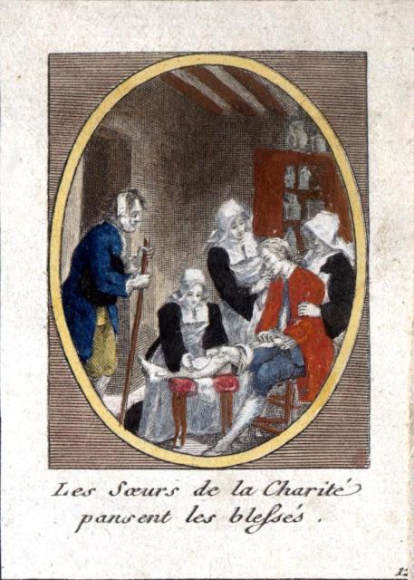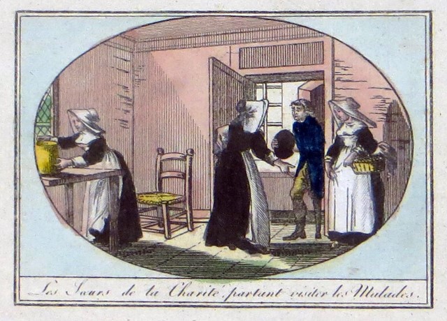 Engraving, England 01, Consolation Illustrated London Times 27 July 1861, by Abraham Solomon Engraving, England 02, by Henriette Brown Engraving, England 03, Convent-shrine-engraving-Illus. London News, 22 -2-1862 by Frank Wyburd Engraving, England 04, lost child Engraving, England 05, Sisters in conversation Engraving, England 06, The Graphic Engraving, England 07 Engraving, England 08 First Italian Hospital, London, Graphic 1889 Engraving, France 001, 1838, Charity Engraving, France 002, DC thankful soldier Engraving, France 003, DC, bandaging soldier Engraving, France 004 DC, caring for sick Engraving, France 005, DC, preparing medicines Engraving, France 006, family of a dead soldier Engraving, France 007, Grenadier protects Sister Engraving, France 008, 1914, Belleville Engraving, France 009, 1946 Engraving, France 010, Bleeding Engraving, France 011, ca. 1730 Engraving, France 012, care for wounded soldiers Engraving, France 013, Chopin death bed with DC Engraving, France 014, Claude Duflot Engraving, France 015, consoling the dying Engraving, France 016, Crimean war Engraving, France 017, deathbed, 1778, signatures Engraving, France 018, deathbed, 1778, Sister detail Engraving, France 019, deathbed, 1778 Engraving, France 020, Dubussy, DPU Engraving, France 021, Edwin Ellis Engraving, France 022, Epinal, 1857 Engraving, France 023, Epinal Engraving, France 024, Exile of the Congregations Engraving, France 025, Foundling hospital Engraving, France 026, Foundling Hospital Engraving, France 027, Foundlings, visit of king and queen Engraving, France 028, Franco-Prussian War, Palace of Versailles, Gallery of Louis 13 by Chas Jos Staniland Engraving, France 029, Hospital of Arnay le Duc Engraving, France 030, Marshal Ney Engraving, France 031, money from rich woman Engraving, France 032, Napoleon, and Sisters Engraving, France 033, Natoire 1 Engraving, France 034, Natoire 2 Engraving, France 035, nursing Engraving, France 036, Paris food distribution Engraving, France 037, Paris, Foundling hospital scenes Engraving, France 038, Paris, Lady of Charity Engraving, France 039, Paris, Rue du Bac, inner courtyard Engraving, France 040, Paris, scene of charity Engraving, France 041, separation of church from state 02, destruction of churches Engraving, France 042, separation of state from church 01, exile of religious Engraving, France 043, Sister bandaging, DPU Engraving, France 044, Sister in heaven Engraving, France 045, Sister standing Engraving, France 046, Sister teaching Engraving, France 047, Sister walking Engraving, France 048, Sister welcomed to heaven by St. Peter Engraving, France 049, Sisters distributing alms Engraving, France 050, Sisters protected in Mexico Engraving, France 051, soup pot, inside, color Engraving, France 052, soup pot, inside Engraving, France 053, soup pot, outside Engraving, France 054, St. Antoinette Bravard Engraving, France 055, visit of count of Cabannès Engraving, France 056, visit to Val-de-Grace, with Sister Engraving, France 057, war Engraving, France 058, with Carmelites Engraving, France 059, Sister caring for wounded soldier Engraving, France 060, wounded soldier Engraving, France 061, Lady, Sister, 18th century 1 Engraving, France 062, Lady, Sister, 18th century 2 Engraving, France 063, Lady, Sister, 18th century, detail Engraving, France 064, membership card for Holy Childhood Engraving, France 065, Sisters and Sacred Heart Engraving, France 066, visiting, Engraving, France 067, bandaging a wounded soldier (see 03 above) Engraving, France 068, distributing bread to the poor Engraving, France 069, bleeding in hospital Engraving, France 070, hanging laundry Engraving, France 071, black habit Engraving, France 072, by Marie-Alexandre Alophe, called Menut; ca. 1860 Engraving, France 073 Engraving, France 074 Engraving, France 075, Sr Simplice, by Gustave Brion for Les Misérables Engraving, France 076 Engraving, France 077, bread line Engraving, France 078, soup kitchen Engraving, France 079, Le Savoyard Engraving, France 080 Engraving, France 081, Soup distribution Engraving, France 082, Crimean War service, by Eugene Appert Engraving, France 083 Engraving, France, 084 Engraving, Germany, Fremde Leiden, fremde Sorgen, Bertalan Szekely, 1872 Engraving, Poland, Drawing by Cichocki Engraving, Poland, habits CM and DC, 1737 Engraving, sick man Engraving, Sister at prayer Engraving, Spain, ca. 1730 Engraving, Spanish DC caring for sick, Engraving, Spanish DC Foundlings Engraving, Spanish DC School Engraving, Spanish DC thankful soldier Engraving, SV sends on mission B Engraving, USA, Andrew Herman Haig, In the Aisles of Chartres Engraving, USA, Anna Kelly Engraving, USA, Arthur Boyd Houghton, Sisters of Charity in Chicago Engraving, USA, Axel Hägg, or Andrew Haig Engraving, USA, Blair Crosbie, 1965 Engraving, USA, CA, Los Altos Hills, by Paul Geissler Engraving, USA, CA, Los Altos Hills, Sister in Paris Engraving, USA, CA, Los Altos, Sisters in Venice Engraving, USA, Franco-Prussian War, 1871 Engraving, USA, Hospital Sisters, Crimean War Engraving, USA, two Sisters, perhaps in New Orleans Engravings a 15-Distribute bread to the poor Engravings a 01-Instruct youth Engravings a 01a-Instructor Engravings a 02-Bleed the sick Engravings a 03-Bring soup for the sick Engravings a 03a-Soup for sick Engravings a 04-Visit prisoners Engravings a 05-Collect herbs for medicines Engravings a 06-Work in pharmacy Engravings a 06a-Pharmacy Engravings a 07-Go on streets to do good Engravings a 08-Receive Communion Engravings a 09-Cleaning Engravings a 1-8 FC Vignettes A Engravings a 10-Make soup for sick Engravings a 11-Make sickbeds Engravings a 12-Bandage the wounded Engravings a 13-Present orphans to charity of faithful Engravings a 14-Go to confession Engravings a 16-Prepare meat for distribution Engravings a 9-16 FC Vignettes B Engravings alpha 1 Engravings alpha 2 Engravings alpha 3 Engravings alpha 4 Engravings alpha 5 Engravings alpha 6 Engravings b 01-Counsels