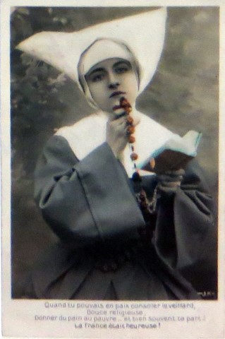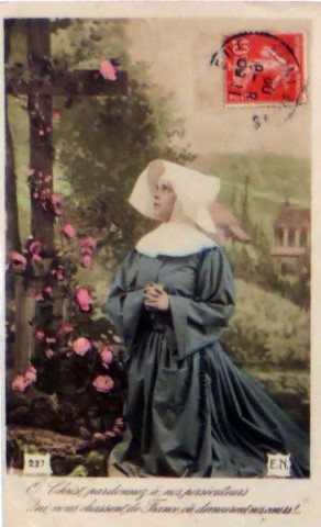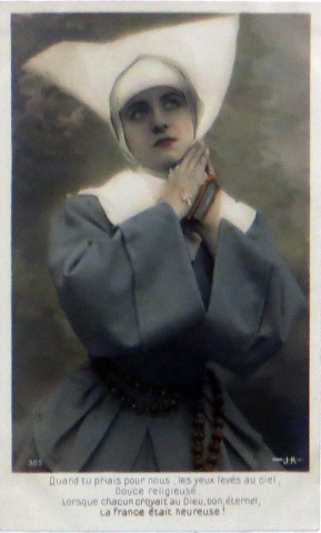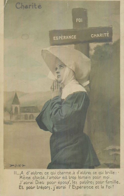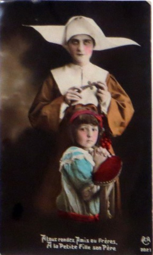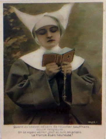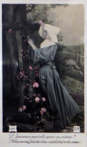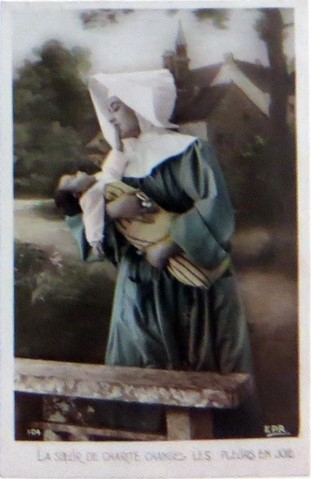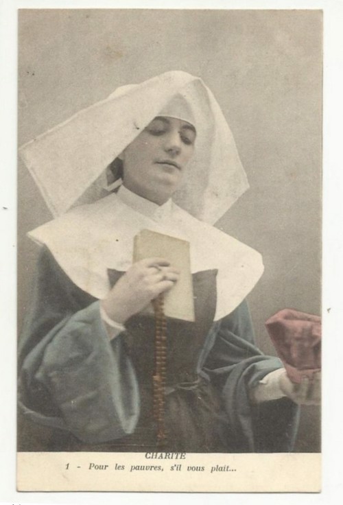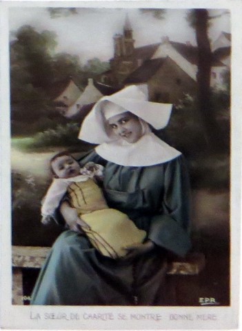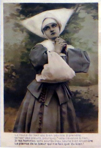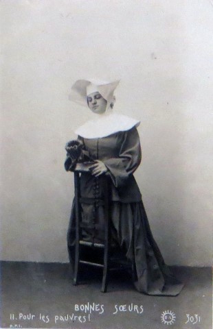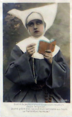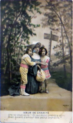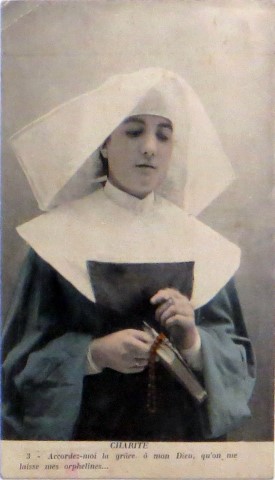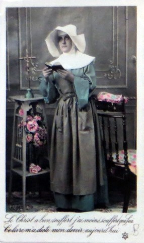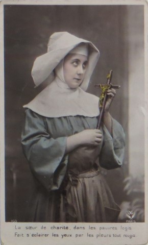 French studio cards, series 301-500 French studio cards, series 501-700 000 Introduction 001, A.N. series, 321 002. A.N. series 003 A.N. series 004, A.N. series 005, A.N. series 006. Bonnes Soeurs, Bergeret series 007. Bonnes Soeurs, Road to exile, 2 008. Claudinet 009. Postcard, care of wounded 010. Studio photo, Reta Walter 011. Exile. The Law, where are you going 012. Faith 013. Studio card, two holy Sisters 014. Forever French 015. Sursum Corda 016. Post card, A Saint 017. Prayer for France 018. Prayer for soldiers 019. Sister and two children 020. Sister finds a baby boy 021. Sister sees the abandoned baby 022. Sister picks up the abandoned child 023. Sister comforts child 024. Sister holds the child 025. Sr. Annette 1 026. St. Annette, 2 027. Sr. Annette 3 028. Sr. Annette 4 029. Sr. Annette 5 030. Sr. Annette 6 031. Sr. Annette 7 032. Sr. Annette 8 033. Sr. Annette 9 034. Sr. Annette 10 035. MF series 4 036. AN series, Charity 037. The Novel of a Sister of Charity, 1 038. The Novel of a Sister of Charity, 6 039. The Novel of a Sister of Charity, 7 040. The Novel of a Sister of Charity 041. The Novel of a Sister of Charity, 10 042. Sr. Jeanne, 4 043. Sr. Jeanne, 5, persecution 044. Sr. Jeanne, 9 045. Sr. Jeanne, 10, Devotion 046. Sr. Jeanne, 11, Toward God 047. Sister teaching 048. AS series 049. AS series 050. AS Series 051. AS Series 052. AS Series 053. AS Series, alternate color 054. AS Series, The Sister of Charity 055. School 1 056. School 2 057. School 3 058. School 4 059. School 5 060. EOK Series, 1 061. EOK Series, 2 062-a, EOK Series, 3 062. EOK Series, 4 063. Angels 064. Angels 065. Angels 066. A.S. series, 1 067. A.S. series, 2 068. A.S. series, 3 069. A.S. series, 4 070. A.S. series, 5 071. A.S. series, 6 072. A.S. series, 7 073. Bonnes Soeurs 3031, 1 074. Bonnes Soeurs 3031, 2 075. Bonnes Soeurs 3031, 3 076. Bonnes Soeurs 3031, 4 077. Bonnes Soeurs 3031, 5 078. Bonnes Soeurs 3031, 6 079. CP Series, 1 080. CP Series, 2 080a. CP Series, 2a, variation 081. CP Series, 3 082. CP Series, 4 083. CP Series, 5 084. HKC Series, 1 085. HKC Series, 2 086. HKC Series, 3 087. HKC Series, 4 088. HKC Series, 5 088. Seaside series, 1 089. Seaside series, 2 090. Seaside series, 3 091. Seaside series, 4 092. Seaside series, 5 093. Poor mother series, 1 094. Poor mother series, 2 095-1. Poor mother series, 3 095-2, Poor Mother, black-white 096. Poor mother series, 4 097. Poor mother series, 5 098. Poor mother series, 6, alternate color 099. Holy Women, 1 100. Holy Women, 2 101. Holy Women, 3 102. Holy Women, 4 103. Holy Women, 5 104, Holy Women 105. EN Series 1 106. EN Series, 2 107. EN Series, 3 108. EN Series, 4 109. AS Series, 1 110. AS Series, 2 111. AS Series, 3 112. AS Series, 4 113. AS Series, 5 114. Paris series, 1 115. Paris series, 2 116. Paris series, 3 117. Paris series, 4 118. Paris series, 5 119. Paris series, 6 120. Charité series 1 121. Charité series 2 122. Charité series 3 123. Charité series 4 124. Charité series 5 125. Charité series 6 126. Charité series 7 127. Charité series 8, black, white 128. Brown habit, 1 129. Brown habit, 2 130. Brown habit, 3 131. Brown habit, 4 132. Star series, 1 133. Star series, 2 134. Star series, 3 135. Star series, 4 136. Star series, 5 137. JK Series, 1 138. JK Series, 2 139. JK Series, 3 140. JK Series, 4 141. JK Series, 5 142. Large cross series, 1 143. Large cross series, 2 144. Large cross series, 3 145. Large cross series, 4 146. EPR Series 1 147. EPR Series 2 148. Prayer 149. Sister in prayer 150. Faith 151. First prayer 152. For the fatherland 153. Our Father 154. Leaving for exile 155. Exile 156. Reading 157. Prayer 158. Prayer book 159. For the poor 160. For France 161. For God 162, Bonne soeur 163. Bonne soeur 164, Bonne soeur 165. Bonne soeur 166, Exile, Liberty 167, Exile, Fraternity 168, Exile, Equality 169. War nurse 170. War 01 171. War 02 172. War 03 173. War 04 174. War 05 175. War 06 176. War 07 177. War 08 178. War 09 179. War 10 180. War 11, New Year's card 181. War 12 182. War 13 183. War 14 184. War 15 185. War 16 186. War 17 187. War 18 188. War 19 189. War 20 190. War 21 191. War 22 192. War 23 193. War 24 194. War 25 195. War 26 196. War 27. 197. War 28 198. War 29 199. War 30 200. War 31 201. War 32, 33 202. War 34 203. HKC series, 6 205. War 35 206. War 36 207. War 37 208. War 38 209. War 39 210. War 40 211. War 41, with Red Cross 212. War 42, British 213. War 43, Red Cross 214. Piety, taught to children 215. Our Brave ones 216. Charity 217. Red Cross 218. Consoling angel 219. Exile 220. Exodus from France 220a. Exodus from France, alternate 221. Separation 222. Sister of Charity 223. Patriotic Sister (see 198) 224. Patriotic Sister 225. Patriotic Sister 226. Patriotic Sister 227. Patriotic Sister 228. Our brave ones. 229. Patriotic Sister 230, praying at the kneeler 231. Patriotic Sister 232. Patriotic Sister 233. Patriotic Sister 234. Patriotic Sister 235. Patriotic Sister 236. Patriotic Sister 237. Patriotic Sister 238 Patriotic Sister 239. Patriotic Sister 240. Patriotic Sister 241. Patriotic Sister 242. Patriotic Sister 243. Patriotic Sister 244. Patriotic Sister 245. Patriotic Sister 246. Patriotic Sister 247. Patriotic Sister 248. Patriotic Sister 249. Patriotic Sister 250. Patriotic Sister 251. Patriotic Sister 252. Patriotic Sister 253. Patriotic Sister 254. Patriotic Sister 255. Patriotic Sister 256. Patriotic Sister 257. Patriotic Sister 258. Patriotic Sister 259. Patriotic Sister 260. Patriotic Sister 261. Patriotic Sister 262. Patriotic Sister 263. Patriotic Sister 264. Patriotic Sister 265. Patriotic Sister 266. Patriotic Sister 267. For God and France 268 Invocation 269. Patriotic Sister 270. Charity 272, Children 273. Sister's prayer is answered 274. Children 275. Children 276. Charity, family 277. Charity, family 278.. Exile 279. Exile 280. Daughter praying 281. Daughter praying 282. Exile, Tableau vivant 01 283. Exile, Tableau vivant 02 284. Exile, Tableau vivant 03 285. Exile, Table