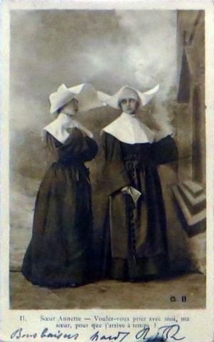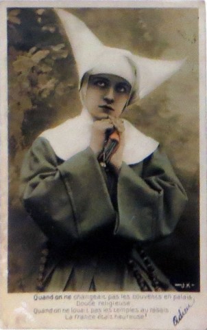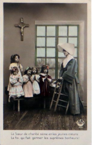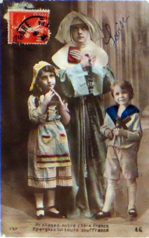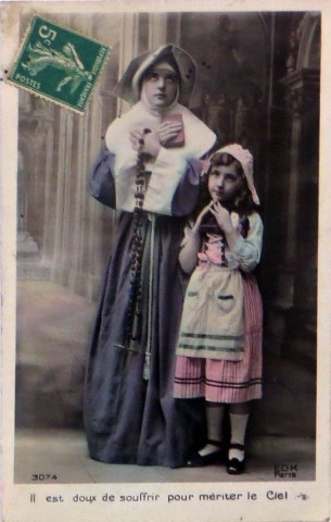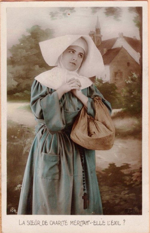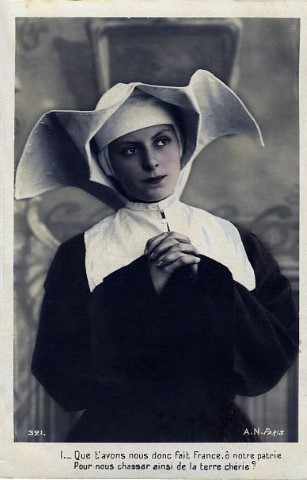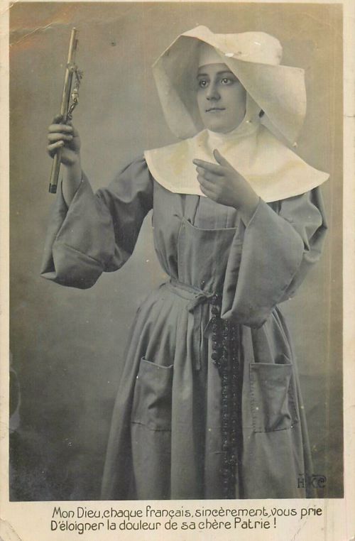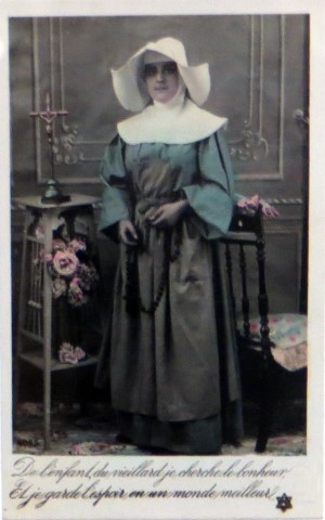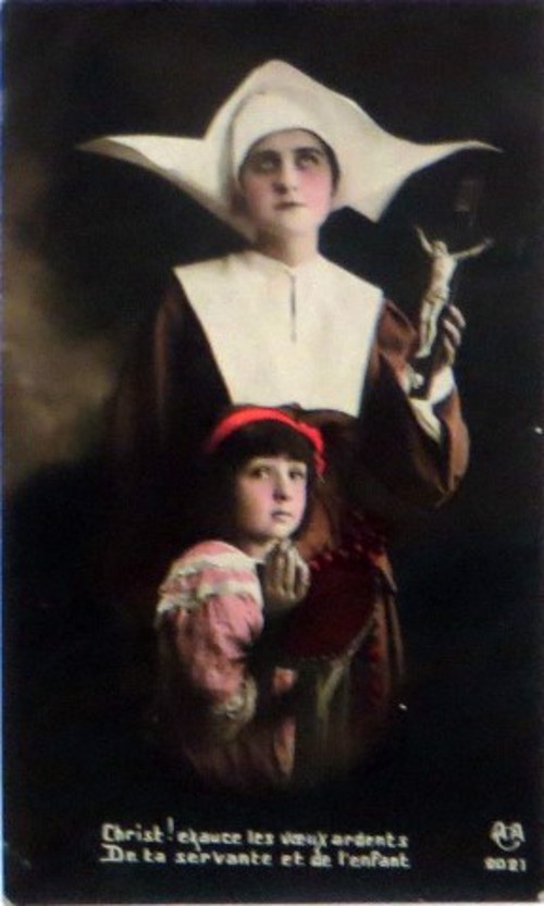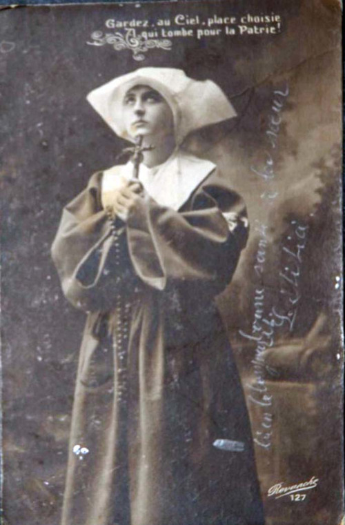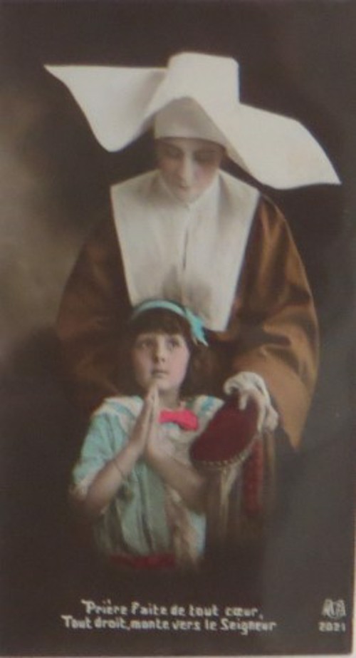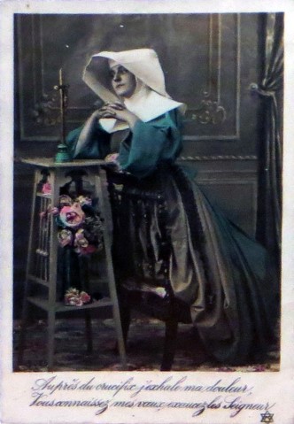 French studio cards, series 301-500 French studio cards, series 501-700 000 Introduction 001, A.N. series, 321 002. A.N. series 003 A.N. series 004, A.N. series 005, A.N. series 006. Bonnes Soeurs, Bergeret series 007. Bonnes Soeurs, Road to exile, 2 008. Claudinet 009. Postcard, care of wounded 010. Studio photo, Reta Walter 011. Exile. The Law, where are you going 012. Faith 013. Studio card, two holy Sisters 014. Forever French 015. Sursum Corda 016. Post card, A Saint 017. Prayer for France 018. Prayer for soldiers 019. Sister and two children 020. Sister finds a baby boy 021. Sister sees the abandoned baby 022. Sister picks up the abandoned child 023. Sister comforts child 024. Sister holds the child 025. Sr. Annette 1 026. St. Annette, 2 027. Sr. Annette 3 028. Sr. Annette 4 029. Sr. Annette 5 030. Sr. Annette 6 031. Sr. Annette 7 032. Sr. Annette 8 033. Sr. Annette 9 034. Sr. Annette 10 035. MF series 4 036. AN series, Charity 037. The Novel of a Sister of Charity, 1 038. The Novel of a Sister of Charity, 6 039. The Novel of a Sister of Charity, 7 040. The Novel of a Sister of Charity 041. The Novel of a Sister of Charity, 10 042. Sr. Jeanne, 4 043. Sr. Jeanne, 5, persecution 044. Sr. Jeanne, 9 045. Sr. Jeanne, 10, Devotion 046. Sr. Jeanne, 11, Toward God 047. Sister teaching 048. AS series 049. AS series 050. AS Series 051. AS Series 052. AS Series 053. AS Series, alternate color 054. AS Series, The Sister of Charity 055. School 1 056. School 2 057. School 3 058. School 4 059. School 5 060. EOK Series, 1 061. EOK Series, 2 062-a, EOK Series, 3 062. EOK Series, 4 063. Angels 064. Angels 065. Angels 066. A.S. series, 1 067. A.S. series, 2 068. A.S. series, 3 069. A.S. series, 4 070. A.S. series, 5 071. A.S. series, 6 072. A.S. series, 7 073. Bonnes Soeurs 3031, 1 074. Bonnes Soeurs 3031, 2 075. Bonnes Soeurs 3031, 3 076. Bonnes Soeurs 3031, 4 077. Bonnes Soeurs 3031, 5 078. Bonnes Soeurs 3031, 6 079. CP Series, 1 080. CP Series, 2 080a. CP Series, 2a, variation 081. CP Series, 3 082. CP Series, 4 083. CP Series, 5 084. HKC Series, 1 085. HKC Series, 2 086. HKC Series, 3 087. HKC Series, 4 088. HKC Series, 5 088. Seaside series, 1 089. Seaside series, 2 090. Seaside series, 3 091. Seaside series, 4 092. Seaside series, 5 093. Poor mother series, 1 094. Poor mother series, 2 095-1. Poor mother series, 3 095-2, Poor Mother, black-white 096. Poor mother series, 4 097. Poor mother series, 5 098. Poor mother series, 6, alternate color 099. Holy Women, 1 100. Holy Women, 2 101. Holy Women, 3 102. Holy Women, 4 103. Holy Women, 5 104, Holy Women 105. EN Series 1 106. EN Series, 2 107. EN Series, 3 108. EN Series, 4 109. AS Series, 1 110. AS Series, 2 111. AS Series, 3 112. AS Series, 4 113. AS Series, 5 114. Paris series, 1 115. Paris series, 2 116. Paris series, 3 117. Paris series, 4 118. Paris series, 5 119. Paris series, 6 120. Charité series 1 121. Charité series 2 122. Charité series 3 123. Charité series 4 124. Charité series 5 125. Charité series 6 126. Charité series 7 127. Charité series 8, black, white 128. Brown habit, 1 129. Brown habit, 2 130. Brown habit, 3 131. Brown habit, 4 132. Star series, 1 133. Star series, 2 134. Star series, 3 135. Star series, 4 136. Star series, 5 137. JK Series, 1 138. JK Series, 2 139. JK Series, 3 140. JK Series, 4 141. JK Series, 5 142. Large cross series, 1 143. Large cross series, 2 144. Large cross series, 3 145. Large cross series, 4 146. EPR Series 1 147. EPR Series 2 148. Prayer 149. Sister in prayer 150. Faith 151. First prayer 152. For the fatherland 153. Our Father 154. Leaving for exile 155. Exile 156. Reading 157. Prayer 158. Prayer book 159. For the poor 160. For France 161. For God 162, Bonne soeur 163. Bonne soeur 164, Bonne soeur 165. Bonne soeur 166, Exile, Liberty 167, Exile, Fraternity 168, Exile, Equality 169. War nurse 170. War 01 171. War 02 172. War 03 173. War 04 174. War 05 175. War 06 176. War 07 177. War 08 178. War 09 179. War 10 180. War 11, New Year's card 181. War 12 182. War 13 183. War 14 184. War 15 185. War 16 186. War 17 187. War 18 188. War 19 189. War 20 190. War 21 191. War 22 192. War 23 193. War 24 194. War 25 195. War 26 196. War 27. 197. War 28 198. War 29 199. War 30 200. War 31 201. War 32, 33 202. War 34 203. HKC series, 6 205. War 35 206. War 36 207. War 37 208. War 38 209. War 39 210. War 40 211. War 41, with Red Cross 212. War 42, British 213. War 43, Red Cross 214. Piety, taught to children 215. Our Brave ones 216. Charity 217. Red Cross 218. Consoling angel 219. Exile 220. Exodus from France 220a. Exodus from France, alternate 221. Separation 222. Sister of Charity 223. Patriotic Sister (see 198) 224. Patriotic Sister 225. Patriotic Sister 226. Patriotic Sister 227. Patriotic Sister 228. Our brave ones. 229. Patriotic Sister 230, praying at the kneeler 231. Patriotic Sister 232. Patriotic Sister 233. Patriotic Sister 234. Patriotic Sister 235. Patriotic Sister 236. Patriotic Sister 237. Patriotic Sister 238 Patriotic Sister 239. Patriotic Sister 240. Patriotic Sister 241. Patriotic Sister 242. Patriotic Sister 243. Patriotic Sister 244. Patriotic Sister 245. Patriotic Sister 246. Patriotic Sister 247. Patriotic Sister 248. Patriotic Sister 249. Patriotic Sister 250. Patriotic Sister 251. Patriotic Sister 252. Patriotic Sister 253. Patriotic Sister 254. Patriotic Sister 255. Patriotic Sister 256. Patriotic Sister 257. Patriotic Sister 258. Patriotic Sister 259. Patriotic Sister 260. Patriotic Sister 261. Patriotic Sister 262. Patriotic Sister 263. Patriotic Sister 264. Patriotic Sister 265. Patriotic Sister 266. Patriotic Sister 267. For God and France 268 Invocation 269. Patriotic Sister 270. Charity 272, Children 273. Sister's prayer is answered 274. Children 275. Children 276. Charity, family 277. Charity, family 278.. Exile 279. Exile 280. Daughter praying 281. Daughter praying 282. Exile, Tableau vivant 01 283. Exile, Tableau vivant 02 284. Exile, Tableau vivant 03 285. Exile, Table