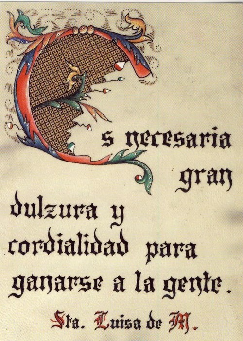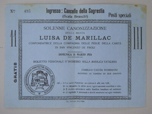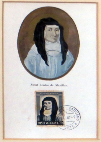 Louise, Austria, Medallion or pin Louise, Belgium, Louise and students Louise, Brazil, coloring page Louise, Brazil, curion doll Louise, Brazil, drawing, pillow Louise, Brazil, drawing Louise, Brazil, Marcia Torquato drawing 1, Louise, open arms Louise, Brazil, Marcia Torquato drawing 2, blank card Louise, Brazil, Marcia Torquato drawing 3, Louise and poor person Louise, Brazil, Marcia Torquato drawing 4, greeting card Louise, Brazil, Marcia Torquato drawing, LdM Christmas card Louise, Catalan language plaque Louise, Colombia 1960 LdM cover Louise, Colombia 1960 LdM Louise, Costa Rica 1960 LdM 10c Louise, Costa Rica 1960 LdM 50c Louise, Costa Rica, 1960, First Day cover Louise, Costa Rica, LdM, 10c Louise, Costa Rica, LdM, 50c Louise, doll 02 Louise, France, Good Shepherd 1 Louise, France, Good Shepherd 2 Louise, France, LdM decorated candle Louise, France, medallion, perh for beatification, 1920 Louise, France, Paris, Louise shrine, close Louise, France, Paris, Louise shrine Louise, France, Paris, MM, chasuble Louise, France, Paris, reliquary drawing Louise, France, plaque with SVdP Louise, France, presentation plaque 01 Louise, France, presentation plaque 02 Louise, France, standing medallion 1 Louise, France, standing medallion 2.jpg Louise, France, the Holy Family 1 Louise, France, the Holy Family 2 Louise, France, Woman writing Louise, Germany, Paderborn, Louise with a girl Louise, Germany, stole, with SVdP Louise, Germany, wine bottle and label Louise, Holy Family painting Louise, Holy Family, copy in church of Blancs-Manteaux, Paris Louise, Holy Family, original by Murillo Louise, Italy, medal Louise, Italy, pin Louise, Italy, Porto diocese, Agnus Dei in wax, LdM 1935 Louise, Italy, Porto diocese, Agnus Dei, LdM 1935 Louise, Legras, Antoine, husband of Louise de Marillac Louise, Light of Pentecost 1 Louise, Light of Pentecost 2 Louise, Lord of Charity back Louise, Lord of Charity front Louise, Marillac coat of arms, 2 Louise, Marillac coat of arms Louise, medal 1, Obverse Louise, medal 1, Reverse Louise, medal 2, for beatification Louise, medal 3 for wearing; Brazil Louise, medal 4, 1960 English text, obv Louise, medal 5, 19th century, in Carnavalet Louise, medal 6 Louise, medal 7 Louise, medal 8, see medal 7 Louise, medal 9, round pendant Louise, medallion framed Louise, medallion Louise, Monaco 1976 LdM cover 2 Louise, Monaco 1976 LdM cover Louise, Monaco, 1976 Red Cross Louise, Monaco, 1976, maximum card 1 Louise, Monaco, St. Louise Louise, peg doll 01 Louise, pendant 1 Louise, pendant 2 Louise, prayerbook, Italian, after 1920 Louise, reliquary 1 Louise, reliquary 2 Louise, reliquary 3 Louise, reliquary 4 Louise, reliquary 5 Louise, reliquary 6 Louise, reliquary 7, with EA Seton Louise, Seal, since 1644 Louise, Signature 1 Louise, Signature 2 Louise, Signature 3 Louise, Spain, Barcelona, in Barceloneta, Louise de Marrilac Street Louise, Spain, book cover, Madrid, 1960 Louise, Spain, medal Louise, Spain, tiles 1 Louise, Spain, tiles 2.JPG Louise, Spanish text, holy card Louise, USA, Brother Ernest, children's book Louise, USA, CA, Los Angeles, SV hospital, Louise enamel on monstrance Louise, USA, Chicago, Louise, Cutout Louise, USA, film poster Louise, USA, IL, Chicago, woven image for a stole Louise, USA, Louise award, glass Louise, USA, Louise weaving Louise, USA, prayer card Louise, USA, saint doll 01 Louise, USA, saint doll 02 Louise, Vatican City, 1950 Holy Year obv. Louise, Vatican City, 1950 Holy Year rev. Louise, Vatican City, 1960, Caritas drawing Louise, Vatican City, 1960, maximum card Louise, Vatican city, canonization ticket,. 1934 Louise, Vatican CIty, souvenir of canonization, 1934 Louise, wall hanging