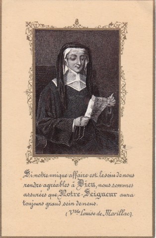 Louise 201, France, Paris, SV preaching, detail 03 Louise 202, France, Tolra ed., A Louise 203, France, Tolra ed., B Louise 204, France, Tolra ed., C Louise 205, France, Tolra ed., D Louise 206, France Louise 207 Louise 208, Spanish Louise 209, holy card Louise 210, holy card Louise 211, French Louise 212 Louise 213 Louise 214, Spanish Louise 215, CLAPVI 1992, 74-75 Louise 216 Louise 217, Italian Louise 218 Louise 219, Italian Louise 220 Louise 221, beatification commemoration Louise 222, beatification prayers Louise 223, French Louise 224, French Louise 225, wood panels Louise 226, wood panels IMG_1689a Louise 227, wood panels Louise 228 Louise 229, Musio, birth Louise 230, Musio, convent Louise 231, Capuchin Louise 232, Musio, marriage Louise 233, Musio, family Louise 234, LeGras death Louise 235, Musio, son illness Louise 236, Musio, Pentecost Louise 237, Musio, Meets VdP Louise 238, Musio, care for girls Louise 239, Musio, foundress Louise 240, Musio, foundlings Louise 241, Musio, Ladies of Charity Louise 242, Musio, Sisters Louise 243, Musio, help for mothers Louise 244, Musio, care of sick, wounded Louise 245, Musio, care of prisoners Louise 246, Musio, famine, plague Louise 247, Musio, her death Louise 248, Solomon Islands, Buma, Malaita Louise 249, French, with relic Louise 250, Italian (See 223) Louise 251, French Louise 252, French, vignettes Louise 253, French Louise 254, French Louise 255, French, embossed, venerable Louise 256, French Louise 257, French, with VdP Louise 258, German, Spanish text Louise 259, signed E Azamble Louise 260 Louise 261 Louise 262, Caglari, mosaic panel Louise 263, Munich Louise 264, Munich Louise 265, Slovakia, Christmas card Louise 266, LdM with Catherine Laboure and seminary sisters Louise 267 Louise 268, Rome, Dispensary, Santa Marta Louise 269 Louise 270, Spanish Louise 271, English text Louise 272, with St. Catherine Labouré and novice sisters Louise 273, Italian Louise 274, Spanish Louise 275, Spain, Madrid, DC house Louise 276, Pentecost, meeting a poor person Louise 277 Louise 278 Louise 279, Distribution of the rules, Italian Louise 280, Spanish Louise 281, Christmas, LdM, Holy Family Louise 282 Louise 283, with book, child Louise 284, martyrs of Arras Louise 285, martyrs of Arras Louise 286, Spanish habit Louise 287, French habit Louise 288, two children Louise 289, patroness Louise 290, with SVdP Louise 291, book cover, Polish Louise 292 Louise 293, by Marta Sedano Louise 294, washing hands of a homeless man Louise 295 Louise 296 Louise 297 Louise 298, Philippines Louise 299, Italian Louise 300