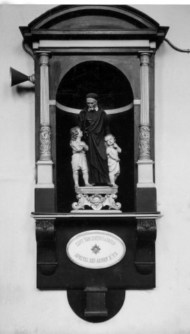Andrimont, Vincent and 2 children Ans, Vincent de Paul shrine Antwerp altar 1 Antwerp altar 2 Antwerp altar 3 Antwerp altar 4 Antwerp altar 5 Antwerp altar 6 Antwerp, SVP monogram Antwerp, Vincent de Paul, initials, variant Averbode, Abbey Baasrode, Dendermonde Baasrode, Vincent statue group Belgium 01, statue on pillar Belgium 02, Vincent de Paul bronze Belgium 03, Vincent de Paul statue Belgium 04, Vincent de Paul, three figures Belgium 05 Belgium 06 Belgium 07 Belgium 08 Belgium 09 Belgium 10, Garden of Brothers of Charity Belgium 11, stained wood Bruges, outdoor statue Buggenhout-Lebbeke, motherhouse, Sisters of SVdP of Buggenhout Butgenbach, Vincent de Paul and children Dendermonde, Holy Spirit Chapel Deventer, St. Lebuinus church, VdP and two children Ghent, Limburgstraat Gijzeghem, Bas Relief Gijzeghem, Vincent de Paul Gijzeghem Haenecour, Vincent de Paul, three children Horendonk, Essen Knesselare, St. Willibrord Leuze, Collegiale Saint Pierre Lierde Lievegem, Residential care center, De Linde, wood carving Louvain (Leuven) Sint-Gertrudis Louvain, Vincent de Paul statue Nieuwerkerken, Sint Pieter parish Opoeteren, parish church Raeren, St. Nikolaus