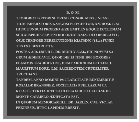 Holy Childhood USA, Eastern Province Baoding cathedral, 2 Baoding cathedral, SS Peter and Paul Baoding, after fire of 1-3 March 1912 Baoding, cathedral 3 Baoding, cathedral interior, color Baoding, cathedral, interior Baoding, cathedral, Lourdes grotto Baoding, cathedral, old photo Baoding, cathedral Baoding, city, after fire of 1912 Baoding, city, cathedral, after the fire of 1912 Baoding, French school 1903 Baoding, French school, 1910 Baoding, interior of CM residence, 1910 Baoding, minor seminary, panorama Baoding, school for catechists, 1899-1900 Baoding, shops facing the street Baoding, street near CM residence, after fire of 1912 Bazhou, tomb of Bishop Song Bazhou, tombstone, Bishop Song Beijing synod, 1892 Beijing, CM school, 1919, Wangfujing Street Beijing, East Church (Dongtang, Wangfujing Church), St Joseph Cathedral 1 Beijing, East Church (Dongtang, Wangfujing Church), St Joseph Cathedral 2 Beijing, East Church (Dongtang, Wangfujing Church), St Joseph Cathedral 3 Beijing, East church (Dongtang) ca 1900 Beijing, East church (Dongtang) ca 1935 Beijing, East Church (Dongtang) ca. 1900 Beijing, East Church (Dongtang) interior, organ Beijing, East Church (Dongtang), ca 1935 Beijing, East church (Dongtang), interior Beijing, Jen-tsen-tang, chapel of Sisters, 1901 Beijing, Jesuits in China Beijing, Lazarist Press 1, ca 1935 Beijing, Lazarist Press 2, ca 1935 Beijing, Lazarist Press 3, ca 1935 Beijing, Lazarist Press 4, undated Beijing, Lazarist Press 5, 1901 Beijing, Lazarist Press, 6, ca 1922 Beijing, North Church (Beitang, cathedral) after destruction of 1900 Beijing, North Church (Beitang, cathedral) before 1900 Beijing, North Church (Beitang) 7, interior Beijing, North Church (Beitang) clocktower Beijing, North Church (Beitang) old interior Beijing, North Church (Beitang) Ridge tiles Beijing, North Church (Beitang) school group Beijing, North Church (Beitang), 1 Beijing, North Church (Beitang), 1897 1 Beijing, North Church (Beitang), 1897 2 Beijing, North Church (Beitang), 1897 3, detail Beijing, North Church (Beitang), 2 Beijing, North Church (Beitang), 3 Beijing, North Church (Beitang), 3rd courtyard, clock tower, ca 1901 Beijing, North Church (Beitang), 4, 1902 Beijing, North Church (Beitang), 4, interior Beijing, North Church (Beitang), 4a, interior Beijing, North church (Beitang), 5, 1901 Beijing, North Church (Beitang), 6, ca 1935 Beijing, North Church (Beitang), 7, with French military after Te Deum, 1901 Beijing, North church (Beitang), before towers, undated Beijing, North Church (Beitang), CM residence, clock tower in summer Beijing, North Church (Beitang), CM residence. domestic chapel ca 1901 Beijing, North Church (Beitang), CM residence Beijing, North Church (Beitang), drawing for wall paintings Beijing, North Church (Beitang), former cathedral, with Daughters of Charity Beijing, North church (Beitang), interior, Benediction 1895 Beijing, North Church (Beitang), old cathedral, 1887-1911 Beijing, North Church (Beitang), photo Beijing, North church (Beitang), residence, library 1901 Beijing, North Church (Beitang), stained glass fragments from earlier church Beijing, North Church (Beitang), stele Beijing, North Church (Beitang), with cannons of Boxers Beijing, North Church (Beitant), glazed ridge tile Beijing, North Church (Beitiang), side view with seminary buildings, 1901 Beijing, North Church, Beitang from air Beijing, North Church, Beitang, 1899, bird's-eye view Beijing, observatory, 1738 Beijing, South Church (Nantang), 1, interior Beijing, South Church (Nantang), 4 ca 1935 Beijing, South Church (Nantang), 5 ca 1935 Beijing, South Church (Nantang), 6 ca 1935 Beijing, South Church (Nantang), 7, interior ca 1935 Beijing, South Church (Nantang), 8 ca 1935 Beijing, South Church (Nantang), engraving Beijing, South Church (Nantang), old Beijing, South Church (Nantang), post card Beijing, South Church (Nantang), St Mary's Church 2, grotto Beijing, South Church (Nantang), St Mary's Church 3, interior Beijing, South Church (Nantang), with gates; undated-resized Beijing, South Church, Nantang, new Beijing, St. Michael church, for legations. 1901 Beijing, St. Michael Church Beijing, St. Michael Church Beijing, West Church (Xitang), engraving from photograph Beijing, West Church (Xitang), St Mary's Church 1 Beijing, West Church (Xitang), St Mary's Church 2 Beijing, West Church (Xitang), St Mary's Church 3, gate Beijing, West Church (Xitang), St Mary's Church 4 ca 1935 Beijing, West Church (Xitang), St Mary's Church 4, Pedrini inscription Beijing, West Church (Xitang), St Mary's Church 6 interior Beijing, West Church (Xitang), St Mary's Church, before 1900 Beijing, Zhengfu cemetery, former, with sailors Beijing, Zhengfu cemetery, French monument Beijing, Zhengfu cemetery, French monument Beijing, Zhengfu cemetery, inscription Beijing, Zhengfu church, restored in 1907 Beijing, Zhengfu parish cemetery, former, 1732-1917 Beijing, Zhengfu temple, cemetery, grave steles, restored, re-erected Beijing, Zhengfu, cemetery, former, monument, 1860 Beijing, Zhengfu, cemetery Chan-Yntchoantze church China, Holy Infancy 1 China, Holy Infancy 2 China, Holy Infancy, color, lace China, Holy Infancy, German text China, liturgical hat for priests China, statistics 1935 Chouanchoutze, former church Chouanchoutze, new church Djefankow church; Yangkiaping monastery church Donglu, Virgin and child Fongkiatchoang Hangzhou, former CM church Hoangt'ai Hong Kong, Chinese motifs, monstrance, chalice and ciborium Hong Kong, cloisonné host boxes Ji'an cathedral, 2012 Jiangxi (Kiangsi) China, text Jiangxi (Kiangsi) China1 Jiaxing, abandoned Jiaxing, CM house Jiaxing, façade Jiaxing, side Kalgan church Kiotchai Koangyang Linglouo church Macau, St. Joseph Seminary chapel Nantoun church Nanyang Cathedral-a Nanyang Cathedral-b Nihowan church Ningbo, Assumption church Ningbo, former CM church Ningbo, Jiangbei church Piaolin Shijiazhuang (Toungkiachwang) parish Shuntefu (Xingtai) hospice men Shuntefu (Xingtai)