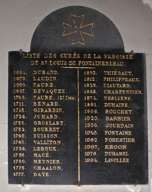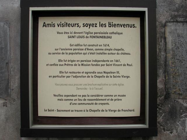 Fontainebleau, CM house Fontainebleau, historical sign, St Louis Fontainebleau, list of CM pastors Fontainebleau, sign Fontainebleau, Church exterior Fontainebleau, history plaque Fontainebleau, palace chapel, dedicated by Louis XIII in 1633 Fontainebleau, Postcard Church exterior Fontainebleau, Postcard Holy Trinity chapel in chateau Fontainebleau, St Louis facade