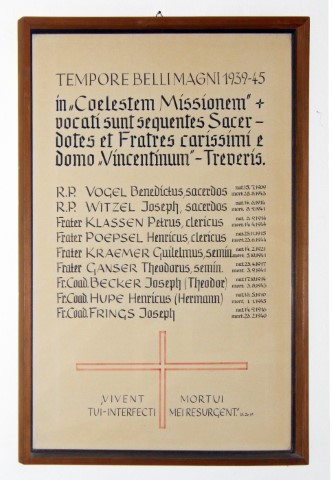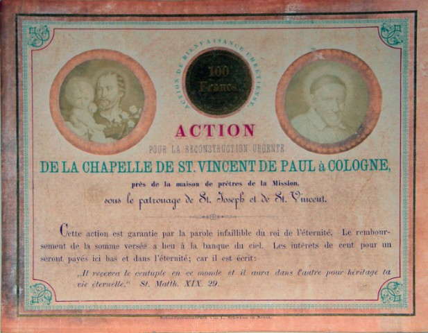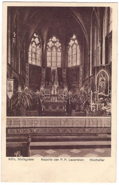 Cologne, chapel interior Cologne, fund-raising efforts Cologne, St. Vincent house Heidelberg, Carolinum 1 Heidelberg, Carolinum 2 Heidelberg, Carolinum 3 Heidelberg, Carolinum 4 Heidelberg, Carolinum, 5 Munich, Sisters of Charity street Niederprum church, cemetery Niederprum historical plaque Niederprum main building Niederprum main gate Niederprum school entry Niederprum street sign Niederprum, letterhead Prum church, burial of Jesus Schleiden-a Schleiden-b Schleiden-c Schleiden, Collegium Marianum Trier, Memorial plaque, deceased Vincentians 1939-45