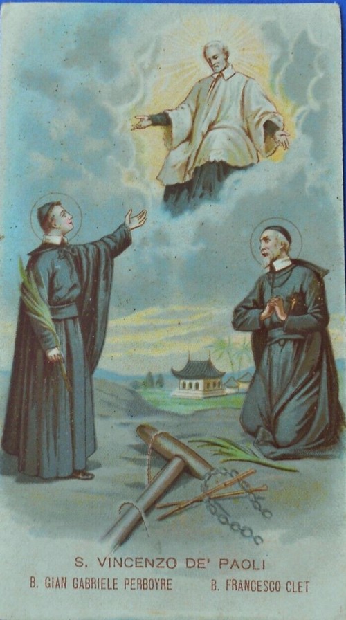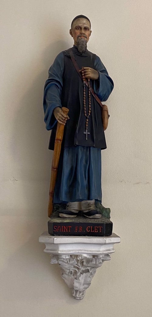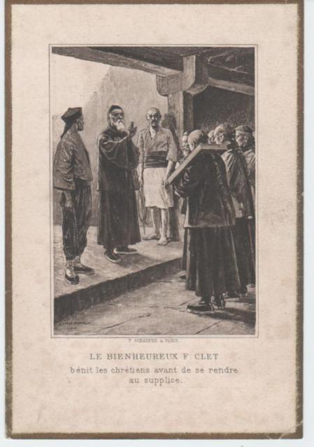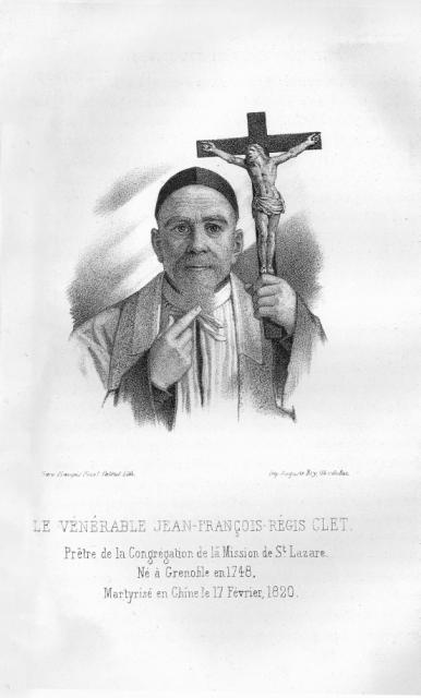 Algieria, Algiers, ex DC, Clet1 Belgium, Theux, Clet Brazil, Petropolis, without cross Brazil, Sao Paulo, Santuário, Clet window China, Bulletin Catholique de Pekin, 1920 (after p. 154) China, method of strangulation for foreigners Clet and Perboyre, NY, Niagara University Clet beatification, 1900 Clet canonization 01 Clet canonization 02 Clet canonization 03 Clet canonization medallion Clet drawing 01 Clet drawing 02 Clet drawing 03 Clet drawing 04 Clet drawing 05 Clet drawing 06 Clet drawing 07 Clet drawing 08 Clet drawing 09 Clet drawing 10 Clet drawing 11 Clet drawing 11a Clet drawing 12 Clet drawing 13 Clet drawing 14 Clet drawing 15 Clet drawing 16 Clet drawing 17 Clet drawing 18 Clet drawing 19 Clet drawing 20 Clet drawing 21 Clet drawing 22 Clet Lettres 1944, Verhoeven Clet painting 05 Clet painting, 01 Clet painting, 02 Clet painting, 03 Clet painting, 04. with Perboyre Clet relic, cord used to strangle him Clet relic, outer garment Clet relic, vest Clet reliquary Clet signature Clet statue, with Perboyre plaques Clet window France, Berceau, Clet window France, Carbonnier, Vautrin, 1853 France, Clet 05, canivet France, Clet, Card, 01 France, Clet, Card, 02, DPU, embossed France, Clet, Card, 03 France, Clet, card, 04 France, Grenoble cathedral France, Paris, Maison Mere France, Paris, Chasuble Clet France, Paris, Clet tomb, mother house France, Paris, Maison Mere, beatification France, Paris, Maison Mere, by Pierre Petit France, Paris, Maison Mere, painting 1 France, Paris, Maison Mere, painting 2 France, Paris, maison mere, Pontelli France, Paris, Maison mere, statue France, Paris, Maison mere, window France, Valfleury, Clet original Greece, Thessalonika Hungary, Piliscsaba, Clet, Perboyre Hungary, Szob, Clet Italy, Cagliari, Clet with crucifix Italy, dual holy card, Perboyre Clet Italy, Lecce diocese, 2009, by G Manzo, enlarged Italy, Lecce Italy, Naples, DC Provincial House Italy, Naples, Vergini, Italy, Oria Italy, Rome, Curia Italy, Siena, (perh. Clet) Italy, Turin engraving Italy, Turin, painting Lebanon, Antoura, Clet statue Mexico, Mexico City, CM Provincial house Netherlands, Panningen, Clet Peru, Clet, painted tiles Poland, Chelmno, Clet's martyrdom Poland, Krakow, DC chapel Poland, Krakow Poland, Warsaw, main altar Slovakia, Bratislava, Clet Slovenia, Ljubljana, CM church Slovenia, Miren, CM church Spain, Anales 1927 p. 392 Spain, Clet Spain, Madrid, Clet with (perh) SV Spain, Salamanca, Clet Spain, Seville, CM Church, Clet Spain, Seville, CM parish, Clet Taiwan, Kaohsiung, SVdP church, Clet USA, CA, Los Angeles, SV Church USA, CA, Montebello USA, IL, Chicago, DePaul, Clet statuette USA, IL, Chicago, former CM house USA, IL, Chicago, SV church USA, IL, La Salle, St. Patrick's parish USA, MD, Emmitsburg, Clet USA, MO, Perryville USA, PA, Germantown, Immaculate Conception church USA, PA, Germantown, SVS, Clet USA, PA, Germantown USA, PR, Ponce, Cathedral, Clet 1 USA, TX, Fort Worth, St. Mary of the Assumption Viet Nam, Clet