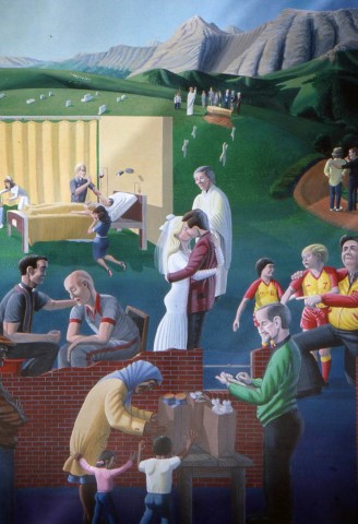 Alien Sightings ASAP Buffalo Bro as Magritte Buffalo Bro himself CA, Mural, Patterson, The Spirit of Patterson, 2003 CA, Mural, Patterson, The Spirit of Patterson, 2003 CA, Mural, Patterson, The Spirit of Patterson, SVdP detail CIF logo, Paris CO, Denver, Colorado Vincentian Volunteers, Summer CO, Denver, Colorado Vincentian Volunteers CO, Denver, St. Thomas Theological Seminary CO, Denver, Vincent mural study CO, Mural, Denver, Chapel Mural, Chicago Vincentian Volunteers, 2017 Confrontation at the Installation Confrontation at the Shrine of John Wayne Faith, Hope, Charity Faith GCD Hand of God Homage to the Void IL, Bridgeview, Arrow, for Arrow Pattern and Foundry Co IL, Chicago, Vincent de Paul and DePaul logo IL, Chicago, Vincent de Paul and University logo IL, Chicago, Virgin Mary and Miraculous Medal IL, Lemont, St. Vincent's 1, left panel IL, Lemont, St. Vincent's 2, middle panel IL, Lemont, St. Vincent's 3, right panel IL, Mural, Chicago, 91st + Commercial, 01 IL, Mural, Chicago, 91st + Commercial, 02 IL, Mural, Chicago, 91st + Commercial, 03 IL, Mural, Chicago, 91st + Commercial, 04 IL, Mural, Chicago, 91st + Commercial, 05 IL, Mural, Chicago, 91st + Commercial, 06 IL, Mural, Chicago, 91st + Commercial, 07, detail IL, Mural, Chicago, 91st + Commercial, 08, detail IL, Mural, Chicago, 91st + Commercial, complete IL, Mural, Chicago, DePaul Center IL, Mural, Chicago, Oscar Meyer School, detail IL, Mural, Chicago, Oscar Meyer School IL, Mural, Chicago, The Roots of Argyle, 01 IL, Mural, Chicago, The Roots of Argyle, 02 IL, Mural, Chicago, The Roots of Argyle, 03 IL, Mural, Chicago, The Roots of Argyle, 04 IL, Mural, Chicago, The Roots of Argyle, 05 IL, Mural, Chicago, The Roots of Argyle, 06 IL, Mural, Chicago, The Roots of Argyle, 07 IL, Mural, Chicago, The Roots of Argyle, 08 IL, Mural, Chicago, The Roots of Argyle, 09 IL, Mural, Chicago, The Roots of Argyle, 10 IL, Mural, Chicago, We are Depaul 2, mural 1 IL, Mural, Chicago, We are Depaul 2, mural 2 IL, Mural, Chicago, We are Depaul 2, mural 3 IL, Mural, Chicago, We are Depaul 2, mural 4 IL, Mural, Chicago, We are Depaul 2, mural 5 IL, Mural, Chicago, We are Depaul 2, mural 6 IL, Mural, Chicago, We are DePaul mural 1, close IL, Mural, Chicago, We are DePaul mural 2, IL, Mural, Northfield, St. Louise de Marillac High School 1 IL, Mural, Northfield, St. Louise de Marillac High School 2 IL, Palos Park, Roots 1 IL, Palos Park, Roots 2 IL, Palos Park, Roots 3, Frederic Ozanam IL, Palos Park, Roots 4, Jesus and the disciples IL, Palos Park, Roots 5, construction details IL, Palos Park, Roots 6, construction details IL, Roots, Chicago, Shadow mural maquette IL, Roots, Chicago, Shadow mural LA, Mural, New Orleans, Rebuild Center, left panel LA, Mural, New Orleans, Rebuild center, right panel Looking at the promise, detail Looking at the Promised Land, 1992 Looking at us, 1992 Magritte as Buffalo Bro Meditation 1, We are all related MO, Mural, St Louis, Vincent de Paul and poor MO, Trail of Tears, Charity Along the Trail of Tears My Horse Is PA, Mural, Germantown, St. Vincent's Orchard, complete PA, Mural, Germantown, St. Vincent's Orchard, south wall, artists PA, Mural, Germantown, St. Vincent's Orchard, south wall PA, Mural, Germantown, St. Vincent's Orchard, west wall, detail PA, Mural, Germantown, St. Vincent's Orchard, west wall Rome, Mural, General Curia, SV head Rome, Mural, General Curia, The Gleaners Roots, Shadow mural study Second, Third & Fourth Day [of Creation] Secure-Insecure Seven days of creation, 1993 SOP St. Vincent, Haiti The Bridge Project, Logo The Cisco Kid They Walked Away Third Day of Creation Tightrope, detail Tightrope Transformation Untitled 1 Untitled 2 View from above Waiting Wall of denial I Wall of Denial II Wall of Denial III, immigration