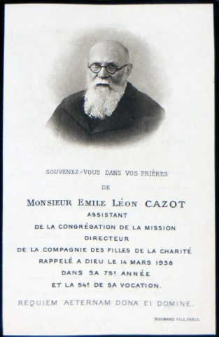 Carbonnier, art works Clothing, style Martyrs, Revolution Signatures 17th century CMs Aladel, Jean-Marie, 1 Aladel, Jean-Marie, 2 Alves, Joseph Aubert, Charles-Marie, Amiens photo Aubert, Charles-Marie, Amiens, Ste Anne, Baret, Joseph, 1703-78 Barrault Bedjan, Paul Bobé, Jean, trial map of North America 1718 Cazot, Emile 01 Cazot, Emile 02 Coste, Pierre, as a child Coste, Pierre, as young soldier Coste, Pierre, portrait 1 Coste, Pierre, portrait 2 Coste, Pierre, signature Coste, Pierre, young Coulbeaux David 01, Savona David 02, age 35 David 03, age 45 David 04 David 05, Chinese dress David 06, Mandarin David 07 David 08 David 09 David 10, Algeria 1877 David 11, Paris 1882 David 12 David 13 David 14, Elaphurus davidianus 1 David 15, Elaphurus davidianus De Quelen. Hyacinthe-Louis, archbishop of Paris Dehus 1901-1912 curé Sihoying Par. Distr. Suenhoa Delemasure 1874-1878 Dodin, André Doré, Maurice, killed in Boxer uprising, 1900 Droulez, Arthur, 1871-1962 Ducoulombier Finet, Bro. Joseph Fockenberghe, Henri Gabet Gaillard, Pierre Garrigues, 1 Garrigues, 2 Garros, Jean Gaudefroy, Optat Giraud, Gustave Gonachon, Jean Grégoire Guedon, Guillaume Guichard, Joseph 1 Guichard, Joseph 2.jpg Guillaume, Eugene Guilloux 1890-1894 curé Sihoying Par. distr Suenhoa Henzmann, Paul, archivist in Rome, general curia, 1983-84 Hofstee, Pierre, student Huc, 1 Huc, 2, with legion d'honneur Huc, 3 Huc, 4, birthplace, Caylus Huc, 5, birthplace, Caylus Huc, 6, Evariste, plaque Jouve, Pierre Koch, Bernard, 2007 Lambert, Gilbert Le Vacher, Jean, 01 Le Vacher, Jean, 02 Le Vacher, Jean, 03 Le Vacher, Jean, 04 Le Vacher, Jean, 05 Le Vacher, Jean, 06 Le Vacher, Jean, 06a Le Vacher, Jean, 07 Le Vacher, Jean, 08 Le Vacher, Jean, 09 Le Vacher, Jean, 10 Le Vacher, Jean, 11 Le Vacher, Jean, 12 Le Vacher, Jean, 13, Le Consulaire, cannon Le Vacher, Jean, 14 Le Vacher, Jean, 15 Le Vacher, Jean, 16 Le Vacher, Jean, 17 Le Vacher, Jean, 18 Le Vacher, Jean, 19 Le Vacher, Jean, 20 Le Vacher, Jean, 21 Leleu, Florent Louis, in Henrion Lobry, François-Xavier 1 Lobry, François-Xavier 2 Lugan, Valfleury heart burial Mailly, Jules Martin, Jean, 1620-94 Milon, Alfred, 1 Milon, Alfred, 2 Morin, Jean Pemartin 1 Pemartin 2 Pemartin, Jean-Baptiste Perboyre, Gabriel, Sec. Gen Philippe, Jean-Laurent 1811 Portail (supposed) Portail, supposed portrait, DPU Portal, F.A Portal, F.B Portal, F.C1 Portal, F.C2 Portal, F.D Portal, F.E Portal, F.F Portal, Fernand, F.A1 Pouget signature 1 Pouget signature 2 Pouget, death mask 1 Pouget, death mask 2 Pouget, G 01 Pouget, G 02 Pouget, G 03 Pouget, G 04 Pouget, G 05 Pouget, G 06 Pouget, G 07 Pouget, G 08 Pouget, G 09 Pouget, G 10 Pouget, G 11 Pouget, G 12, June 1889, ND Pouy Pouget, G 13, commemorative medal Rembry Salette, 1883-87 pastor Sihoying Par. distr. Suenhoa Vaessen, Jean Vanhersecke 1899-1908-a Vieron, Augustin Vigne, Pierre, ex-CM, Bd., 1 Vigne, Pierre, ex-CM, Bd., 2 Vigne, Pierre, ex-CM, Bd., 3