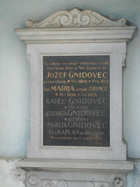 Aidovec new church Ajdovec Gnidovec family graves 2 Ajdovec Gnidovec family graves Ajdovec Gnidovec plaque Gnidovec window, Canada, Montreal, St. Vladimir church Gnidovec window, OL Miraculous Medal, Toronto, ON Gnidovec Leipovic, G. birthplace plaque Ljubljana Gnidovec burial