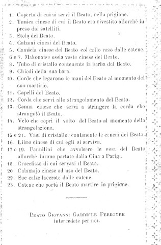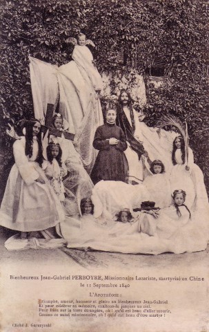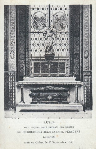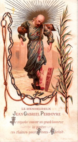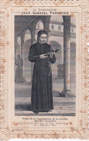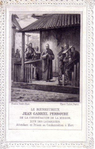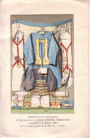 001 Algiers, Perboyre window.jpg 002 Australia, Ashfield, Sydney 003 Austria, Graz, Perboyre 004 Austria, Perboyre card 005 Austria, Vienna, Kaiserstrasse, Perboyre altar 006 Austria, Vienna, Kaiserstrasse, Perboyre death 007 Belgium, Theux, Collegium Marianum 008 Brazil, Belo Horizonte, Perboyre with cross and palm of martyrdom 009 Brazil, Perboyre drawing 010 Brazil, São Paulo, Perboyre window, Santuário 011 China, method of strangulation 1 012 China, method of strangulation 2 013 France, Perboyre's prison vision 014 China, Perboyre tomb marker 015 Cuba, Havana, La Merced collection 016 Cuba, Havana, La Merced 017 Dom. Rep., Sto Domingo, CM hse, Perboyre1 018 Dom. Rep., Sto Domingo, SV parish 019 France, Amiens, St Anne, window 1 020 France, Amiens, St Anne, window 2 021 France, Amiens, St Anne, window 3 022 France, Berceau, window 023 France, Carbonnier, in Vauris, 2, 1853 024 France, Carbonnier, in Vauris, 1853 025 France, Catus, Perboyre 026 France, Dax, NDPouy 027 France, Dourdan 028 France, engraving 01 029 France, engraving 02 030 France, engraving 03; see 012 above 031 France, engraving 04 032 France, engraving 04a 033 France, engraving 08 034 France, engraving 09 035 France, engraving 09a 036 France, engraving 10 037 France, engraving 12 038 France, engraving 13 039 France, holy card 01, prison 040 France, holy card 02, prison 041 France, holy card 03, prison 042 France, holy card 04, prison 043 France, holy card 05, prison, DPU 044 France, holy card 06 045 France, Holy card 07 046 France, holy card 08 047 France, holy card 09 048 France, holy card 10 049 France, holy card 11 050 France, holy card 12, Venerable 051 France, holy card 13a 052 France, holy card 13b 053 France, holy card 14 054 France, holy card 15 055 France, holy card 16 056 France, holy card 17, lace 057 France, holy card 18 058 France, holy card 19 059 France, holy card 20, German 060 France, holy card 21 061 France, holy card 22 062 France, medal, DPU 063 France, Montgesty, altar 064 France, Montgesty, statue 2 065 France, Montgesty, statue 3 066 France, Montgesty, statue 067 France, Montgesty, window 068 France, Paris, Venerable, with palm 069 France, Paris, Carbonnier 070 France, Paris, Maison Mere, with cross 071 France, Paris, Motherhouse Library 072 France, Paris, motherhouse, 02, 1890 073 France, Paris, motherhouse, museum text 074 France, Paris, motherhouse, relics, French 075 France, Paris, motherhouse, rellics, Italian 076 France, Paris, motherhouse 077 France, Paris, Perboyre tomb, post card 078 France, Paris, Perboyre tomb 079 France, Paris, provincial office 2 080 France, Paris, provincial office 081 France, Paris, statue 01 082 France, Paris, statue 01a. 082 France, Paris, statue 01b 083 France, Paris, statue 02 084 France, Paris, statue 03 085 France, Paris, Vincentian museum 086 France, post card tableau 087 France, post card, crucifixion 088 France, Rocamadour basilica 089 France, Sapiac, Perboyre 090 France, St Flour, plaque in former seminary 091 France, Tableau vivant, postcard, DPU 092 France, Vie abrégée 1886 093 France, Vincentiana 46-6 2002 094 Germany, Trier 095 Hungary, Budapest, CM house 096 Hungary, Perboyre 097 Italy, holy card 01 098 Italy, holy card 02 099 Italy, holy card 03 100 Italy, Lecce
