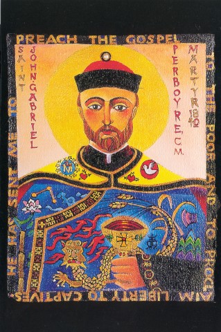 101 Italy, Naples, Vergini 102 Italy, Naples, Via Vergini 103 Italy, Oria 104 Italy, Perboyre by Musin, detail 105 Italy, Perboyre by Musin 106 Italy, Perboyre 107 Italy, Rome, General Curia 108 Italy, Rome, Daughters of Charity Prov Hse 2 109 Italy, Rome, Daughters of Charity Prov Hse window 110 Italy, Rome, Daughters of Charity Prov Hse 111 Italy, Rome, Leoniano, Perboyre in prison 112 Italy, Rome, Leoniano, jpg 113 Italy, Siena, 1 114 Italy, Siena, 2 115 Italy, Siena, 3 116 Italy, venerable 117 Lebanon, Antoura Icon 118 Lebanon, Antoura, Perboyre trial, window 119 Lebanon, Antoura, statue 120 Lebanon, Antoura, window 1 121 Lebanon, Antoura, window 2 122 Lebanon, Beirut, window 123 Perboyre, execution method 124 Perboyre, torture 1 125 Perboyre, torture 2 126 Perboyre, trial 127 Perboyre 01 128 Perboyre 02 129 Perboyre 03 130 Perboyre 04 131 Perboyre 05 132 Perboyre 06 133 Perboyre 07 134 Perboyre 08 135 Perboyre 09 136 Perboyre 10 137 Perboyre 11 138 Perboyre 12 139 Perboyre 13 140 Perboyre14 141 Perboyre 15 142 Perboyre 16 143 Perboyre 17 signature 144 Perboyre 17 145 Perboyre 17a 146 Perboyre 17b 147 Perboyre 18 148 Perboyre 20 149 Perboyre 21 150 Perboyre 22 151 Perboyre 23 152 Perboyre 24 153 Perboyre 25, relic 154 Perboyre 26, relic 155 Perboyre 27 156 Perboyre 28 157 Perboyre 29, Aloysius Gonzaga venerating crucifix 158 Perboyre 30, holy card 159 Peru, Perboyre, painted tiles 160 Poland, Chelmno, martyrdom 161 Poland, Krakow, Perboyre 162 Poland, Warsaw, Holy Cross 163 Poland, Warsaw, main altar 164 Poland, Wasaw, DC, St. Stanislaus, model with crucifix 165 Slovakia, Bratislava, Perboyre 166 Slovakia, Kosice, statue 167 Slovenia, Celje, Perboyre banner 168 Slovenia, Ljubljana, statue 169 Slovenia, Miren, statue 170 Spain Madrid 171 Spain, Andujar, chapel 172 Spain, Martyrdom, 1996 173 Spain, Os Milagres, stone statue 174 Spain, Perboyre 175 Spain, Seville, Perboyre window 176 Spain, Zaragoza, museum 177 France, St Flour, former seminary chapel 178 USA, CA, Los Angeles, SV Church banner 179 USA, CA, Los Angeles, SV Church 180 USA, CA, Sta Barbara, Seminary 181 USA, IL Chicago, CM house 182 USA, IL, Chicago, DePaul, Perboyre Relic 183 USA, IL, Chicago, DePaul, Perboyre reliquary 184 USA, IL, Chicago, DPU card 01 185 USA, IL, Chicago, DPU card 02 186 USA, IL, Chicago, DPU Card 03 187 USA, IL, Chicago, DPU card 04 Austria 188 USA, IL, Chicago, DPU card 05 Austria 189 USA, IL, Chicago, DPU, Venerable JGP 190 USA, IL, Chicago, Mission House 191 USA, IL, Chicago, SV Church 01 192 USA, IL, Chicago, SV Church 02 193 USA, IL, Chicago, SV Church 03 194 USA, LA, New Orleans, St. Stephen rose 195 USA, LA, New Orleans, St. Stephen rose 196 USA, PA, Philadelphia, McGrath painting, original, signature 197 USA, PA, Philadelphia, McGrath painting, original 198 USA, PA, Philadelphia, McGrath painting 199 USA, MD, Emmitsburg, shrine 200 USA, MO, Perryville, 01