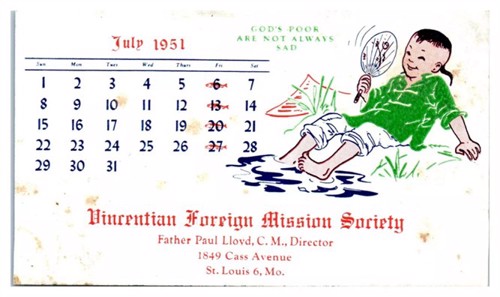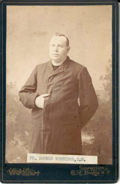 DeAndreis, Felix Elder, Mark, art Alizeri, Joseph Amat, relic attestation Antill, Edward A Asmuth, Henry A 1 Asmuth, Henry A 2 Barnwell, William Bereswill in China Bishops and priests 1930 Bogel, William Burlando, Francis James, Emmitsburg tombstone Burlando, Francis James Byrne, Frank Cellini, Francis; Cellinian Balm bottle Durkin, James 1 Durkin, James 2 Eberhardt, Newman Eckles, Charles Farrell, Edward Fischer, James A., 1 Fischer, James A., 2 Glass, Joseph, cemetery marker Grace, Luke Guedry, Felix Hayden, James Oliver Healey, Dennis Hickey, John W Judge 01, Thomas Augustine Judge 02 Judge 03 Judge 04 Judge 05 Judge 06 Judge 07, icon Judge 08 Judge 09 Judge 10, tomb monument Kavanaugh, Patrick V Kimmerle, Bro. Michael Kircher, Michael Joseph 1 Kircher, Michael Joseph 2 Lamey, John Landry, John Theophile Likly, William Menniges, Herman V (2) Menniges, Herman V Neck O'Donoghue, F Olivier, Donatien, diocesan pastor, only known likeness Raho, Blaise Shaw, Thomas USA East, China Missioners First Group 1921 USA East, Fr McGill, CM (left) 1903 USA East, Germantown, 1922, identifications USA East, Germantown, 1922 USA West, Vincentian Foreign Mission Society 01, 1952 USA West, Vincentian Foreign Mission Society 03-04, 1954 USA West, Vincentian Foreign Mission Society 07-09, 1954 USA West, Vincentian Foreign Mission Society 08, 1951 USA West, Vincentian Foreign Mission Society, 07, 1951 USA, DC, Washington, National Shrine, mosaic