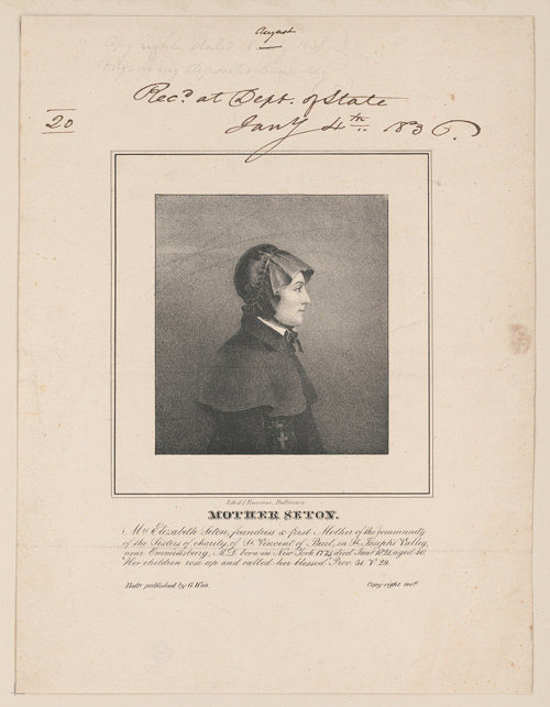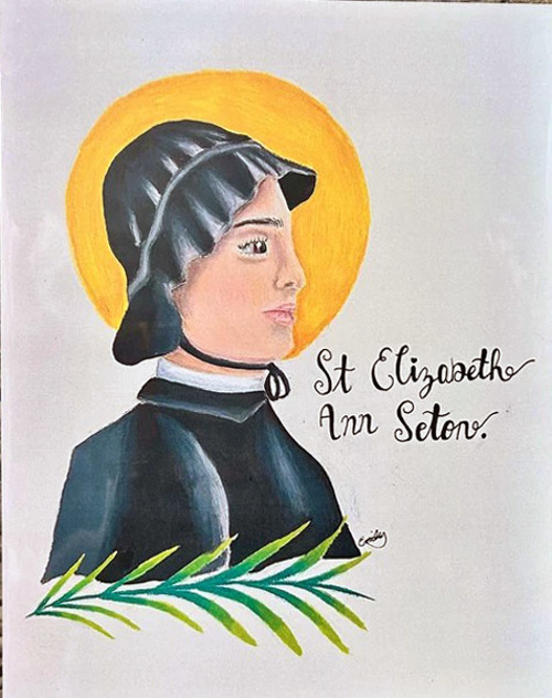 Seton 401, Notre Dame University Seton 402, holy card Seton 403, NY, New York, St. Patrick's cathedral Seton 404, figure with ovals Seton 405, USA, VA, Arlington, EAS Church, 405 Seton 406, logo Seton 407, seated statue Seton 408, Woodcarved statue Seton 409 Seton 410 Seton 411 Seton 412, College of Mt. St. Vincent, Bronx, NY Seton 413 Seton 414 Seton 415, coloring book Seton 416, polished bronze Seton 417 Seton 418 Seton 419 Seton 420, logo Seton 421, OH, Cincinnati, Mt. St. Joseph University Seton 422 Seton 423, Seton Hill Seton 424, OH, Cincinnati, Mt. St. Joseph Seton 425 Seton 426 Seton 427, OH, Powell, St. Joan of Arc church Seton 428 Seton 429 Seton 430 Seton 431 Seton 432 Seton 433, drawing Seton 434, marble plaque Seton 435, statue Seton 436, Cemetery plaque Seton 437, drawing Seton 438, Book cover Seton 439, book cover, spine Seton 440 (See Seton 345 Seton 441, NY, NY, St. Patrick's cathedral, copy Seton 442, Engraving Seton 443, OH, Westerville, St Paul Apostle, mural detail Seton 444 framed Seton 445, drawing Seton 446, coloring book image Seton 447, coloring book Seton 448, USA, FL, Miami, St. Kieran parish Seton 449, USA, OH, Findlay, St. Michael the Archangel Seton 450, book cover Seton 451, O'Donnell, Catherine, 2018 Seton 452 book cover Seton 453, book cover Seton 454, Annabelle Melville, book cover Seton 455, Walton, Charles S., 2024 Seton 456, by Scott, Arnold E., 2024 Seton 457, by Code, Joseph, 1957 Seton 458, by Kathleen Sprows Cummings, 2019 Seton 459, ,Judith Metz, 2011 Seton 460, Angelina Ainsley. 2023 Seton 461, Leonard Feeney, book cover Seton 462, commercial photo Seton 463, USA, FL, McCarthy High School chapel, Southwest Ranches Seton 464, the Educator Seton 465, by Peter Gray Seton 466, Ceramic medal on braided Cord Seton 467, medal, made in Italy Seton 468, Locket Necklace Seton 469, Pesonalized with birthstone Seton 470 Seton 471, cloth relic Seton 472, Schulte, Carl Seton 473, EAS and Simon Bruté Seton 474, imaginative icon Seton 475, silhouette Seton 476 Seton 477, Sisters with a Mission, 2007, by Lorrie Garcia Seton 478, Seton Spirituality Center, Nonsan, South Korea Seton 479, side view Seton 480, by Nippert Seton 481, with students Seton 482, pendant medal Seton 483, medallion with prayer Seton 484, standing image Seton 485, watercolor Seton 486 Seton 487, drawing Seton 488, statue detail Seton 489, drawing Seton 490, drawing Seton 491, drawing Seton 492, watercolor Seton 493, icon style Seton 494, drawing Seton 495, Middle Eastern style Seton 496, imaginative Seton 497, Christmas ornament Seton 498 Seton 499 Seton 500, photographic style