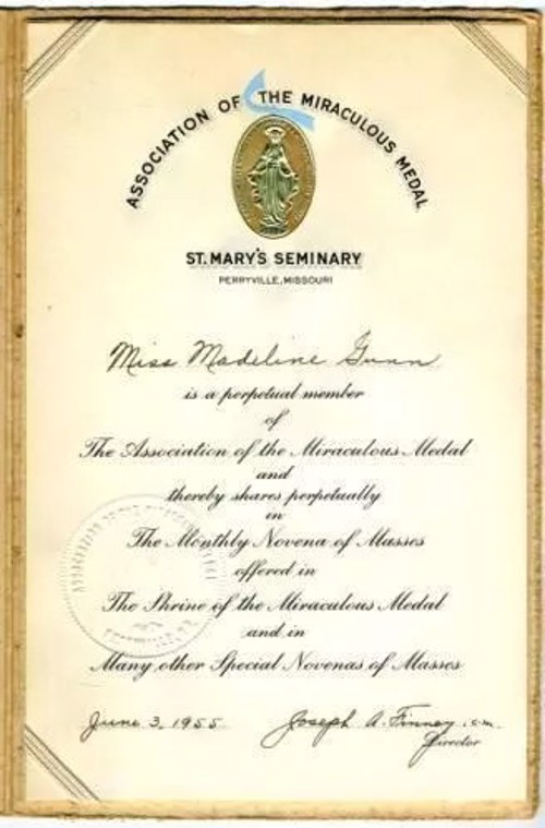 Mirac. Medal (501), Germantown, PA Mirac. Medal (502) Mirac. Medal (503) Mirac. Medal (504) Mirac. Medal (505), St Pierre d'Arene, Nice, France Mirac. Medal (506), apparition statues, Portuguese Mirac. Medal (507), apparition Mirac. Medal (508), apparition Mirac. Medal (509) with VdP Mirac. Medal (510) Mirac. Medal (511) Mirac. Medal (512) Mirac. Medal (513) Spain, Toledo Mirac. Medal (514), USA, Cathedral-Basilica, St. Louis, MO Mirac. Medal (515) Mirac. Medal (516), PA, Germantown, chapel Mirac. Medal (517), PA, Germantown, chapel Mirac. Medal (518), badge Mirac. Medal (519), New England province Mirac. Medal (520) Mirac. Medal (521) Mirac. Medal (522), Germantown, membership booklet Mirac. Medal (523), Germantow. Novena booklet Mirac. Medal (524), Perryville, booklet with medal Mirac. Medal (525), Joseph Skelly jubilee key chain Mirac. Medal (526), membership card Mirac. Medal (527) Mirac. Medal (528) Mirac. Medal (529) small ca 3 ft x 7 ft Mirac. Medal (530), high resolution Mirac. Medal (531), altar frontal, with SVdP Mirac. Medal (532), House blessing,Perryville Mirac. Medal (533), Perryville, 1947 Mirac. Medal (534) Perryville 1950 Mirac. Medal (535) Perryville 1976 Mirac. Medal (536), Perryville, membership Mirac. Medal (537), commemorative plate Mirac. Medal (538), obv, Central Shrine, Germantown Mirac. Medal (539) rev. Central Shrine, Germantown Mirac. Medal (540), obv., Central Shrine, Germantown Mirac. Medal (541), rev. Central Shrine, Germantown Mirac. Medal (542), Italy, Italian and Latin text Mirac. Medal (543), Polish Mirac. Medal (544), water color MIrac. Medal (545), cartoon drawing Mirac. Medal (546), painted glass Mirac. Medal (547), without rays, prayer text Mirac. Medal (548), English text Mirac. Medal (549), English Mirac. Medal (550) mosaic Mirac. Medal (551), with St. Catherine Labouré Mirac. Medal (552) Arabic text Mirac. Medal (553), banner Mirac. Medal (554), Nippert Mirac. Medal (555), St. Louis Mirac. Medal (556) St. Louis Mirac. Medal (557) Spanish text Mirac. Medal (558), Recording of Novena, Perryville, St. Mary's Seminary Mirac. Medal (559), Spanish text Mirac. Medal (560) Mirac. Medal (561) Mirac. Medal (562) Mirac. Medal (563) Mirac. Medal (564) Mirac. Medal (565), Portuguese text Mirac. Medal (566), Spanish language text, drawing Mirac. Medal (567), with Louise de Marillac in white coif Mirac. Medal (568), Perpetual Novena booklet Mirac. Medal (569), Chicago, St. Joseph Hospital Mirac. Medal (570). detail Mirac. Medal (571), Portuguese text Mirac. Medal (572) Mirac. Medal (573) Mirac. Medal (574) Mirac. Medal (575) Mirac. Medal (576) Mirac. Medal (577) Mirac. Medal (578) Mirac. Medal (579), English text Mirac. Medal (580), canivet Mirac. Medal (581), Italian text Mirac. Medal (582), French Mirac. Medal (583), card and medal Mirac. Medal (584) Mirac. Medal (585), banner Mirac. Medal (586), reverse Mirac. Medal (587), with hearts Mirac. Medal (588), reverse Mirac. Medal (589), woven, reverse Mirac. Medal (590) Mirac. Medal (591), reverse, engraving Mirac. Medal (592), reverse, engraving Mirac. Medal (593), reverse engraving Mirac. Medal (594), as a clock Mirac. Medal (595), engraving; reverse in upper frame Mirac. Medal (596) illustrations Mirac. Medal (597), illustrations Mirac. Medal (598), magazine cover Mirac. Medal (599), Spanish text Mirac. Medal (600), Golden rays