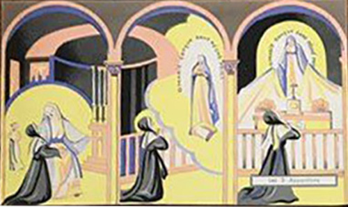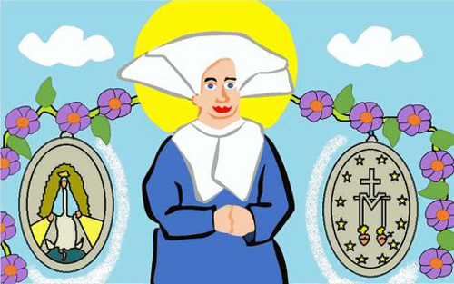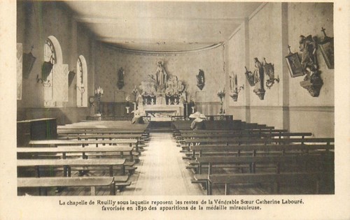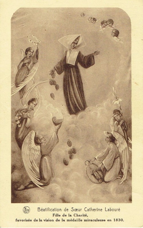 Labouré 500, apparition Labouré 501, red shoes Labouré 502, shrine Labouré 503, painted panel Labouré 504 Beatification Labouré 505, cartoon figure Labouré 506, chapel at Reuilly Labouré 507, supposed photo of Catherine Labouré with elderly Labouré 508 Labouré 509, Germantown Labouré 510, book cover Labouré 511 Labouré 512 Labouré 513 Labouré 514 Labouré 515, Italy, bronze standing [anel Labouré 516 Labouré 517, holding medals Labouré 518, saint's room Labouré 519 (see 100) Labouré 520, Heart of SVdP Labouré 521 Labouré 522 Labouré 523 Labouré 524, Cradle Labouré 526, Brazil Labouré 526 Labouré 527, book cover, Laurent Labouré 528, pendant medal Labouré 529 Labouré 530 Labouré 531 Labouré 532 Labouré 533, apparitions Labouré 534 Labouré 535, Spain Labouré 536 Labouré 537 Labouré 538 Labouré 539, Spanish Labouré 540, perh. Polish Labouré 541 Labouré 542 Labouré 543 Labouré 544, orange prayer book Labouré 545, Shrine, Emmitsburg, MD, USA Labouré 546, post-mortem photo Labouré 547, Nangis_Saint-Martin Labouré 548, bronze Labouré 549, two panels Labouré 550 Labouré 551, village parish church Labouré 552, Fain-les-Moutiers, with Labouré property at right front Labouré 553, Fain les Moutiers Labouré 554, pigeon coop Labouré 555, drawing 1, apparitions Labouré 556, drawing 3, with her pigeons Labouré 557, drawing 2, distributing the medal Labouré 558, drawing, 4, Caring for elderly sick Labouré 559, Drawing 5, the little angel Labouré 560, entry to family farm Labouré 561 Labouré 562, holding medal, in habit of seminary sister Labouré 563, medal Labouré 564, Poland, Morawica, All Saints church Laboure 565, Italy Labouré 566 Labouré 567, Chinese text--I especially love to pour out graces on you Labouré 568 Labouré 569, Polish Labouré 570 by György Sütő, airbrush, 2022 Labouré 571 Labouré 572 Labouré 573, sewing Labouré 574, Saint Martin de Marcillé la ville, two apparitions Labouré 575, in CM motherhouse chapel Labouré 576, Glass magnet watermarked Labouré 577 Labouré 578, Amiens, Ste. Anne, side altar Labouré 579, Reuilly Labouré furnishings, relics Labouré 580, holy card with relic Labouré 581, apparition at the director's chair Labouré 582, promise from medal Labouré 583, Italian Labouré 584, Italian; see also 512 Labouré 585, Italian Labouré 586, Congratulations Labouré 587 Labouré 588 Labouré 589 Labouré 590 Laboure 591 Labouré 592, cartoon, Brazil 1 Labouré 593, overgrown statue Labouré 594, sculpture in main entry courtyard Labouré 595, for coloring Labouré 596, Dirvin, book cover Labouré 597, wistful Catherine Labouré 598 Labouré 599, restores Mary's crown as predicted, post card