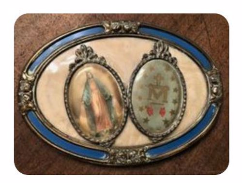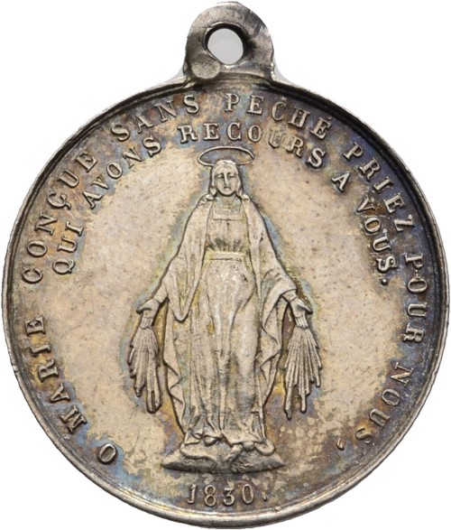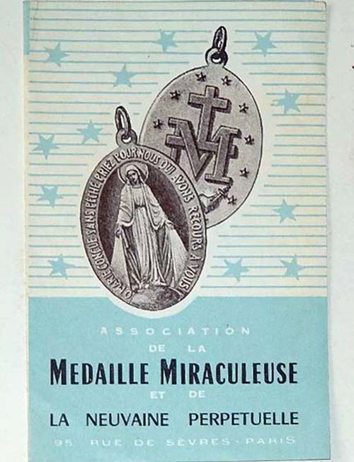 Mirac. Medal (601), novena booklet Mirac. Medal (602), Association of the MM, Perpetual Novena Mirac. Medal (603), Hungarian Mirac. Medal (604), Month of Mary booklet Mirac. Medal (605) Mirac. Medal (606), souvenir medals Mirac. Medal (607), chasuble Mirac. Medal (608), silk banner Mirac. Medal (609) Mirac. Medal (610) Mirac. Medal (611) obverse Mirac. Medal (612), Children of Mary version Mirac. Medal (613), Perryville