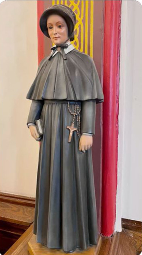 Seton 601, statuette Seton 602, book and rosary Seton 603 Seton 604, with metal halo Seton 605, carved wood Seton 606, wood statue